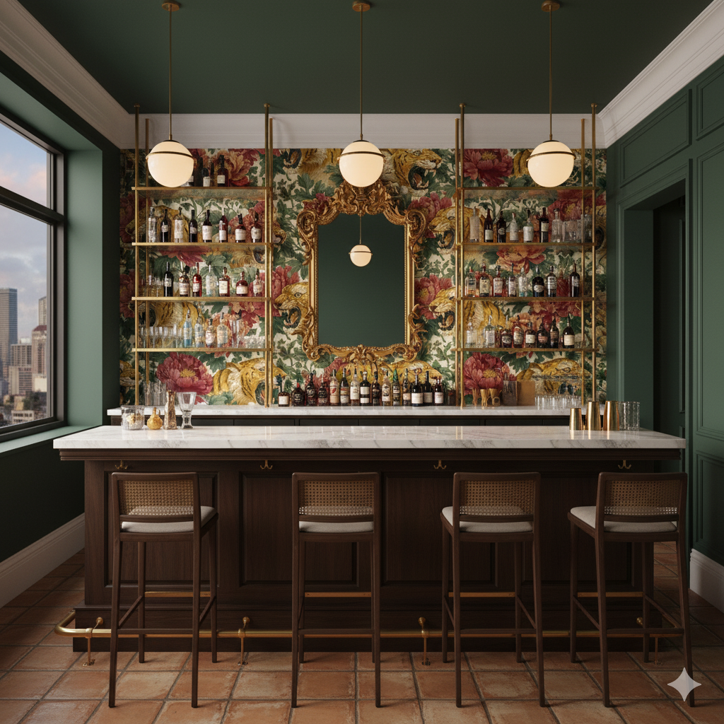 Wallpaper pattern is 24" x 24" repeat.