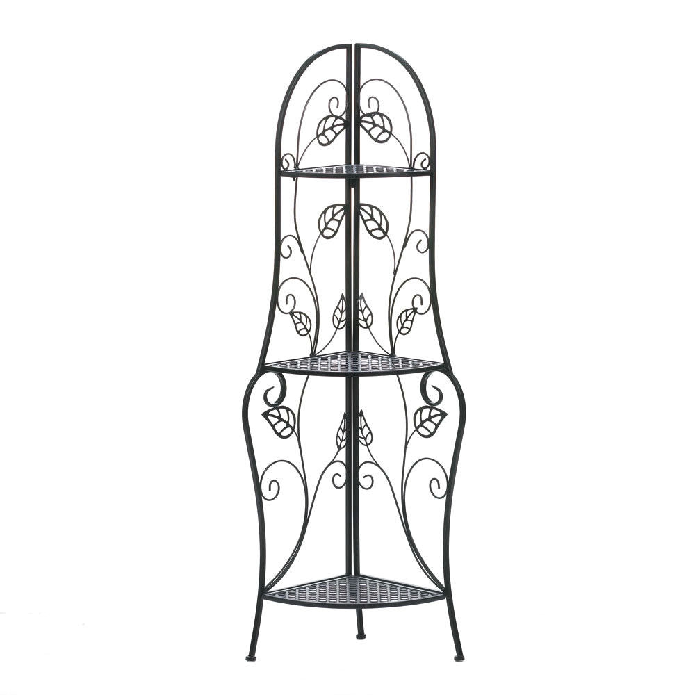 - Traditional Iron Corner Bakers Rack 3-Tier Plant Stand Kitchen Dining Shelf