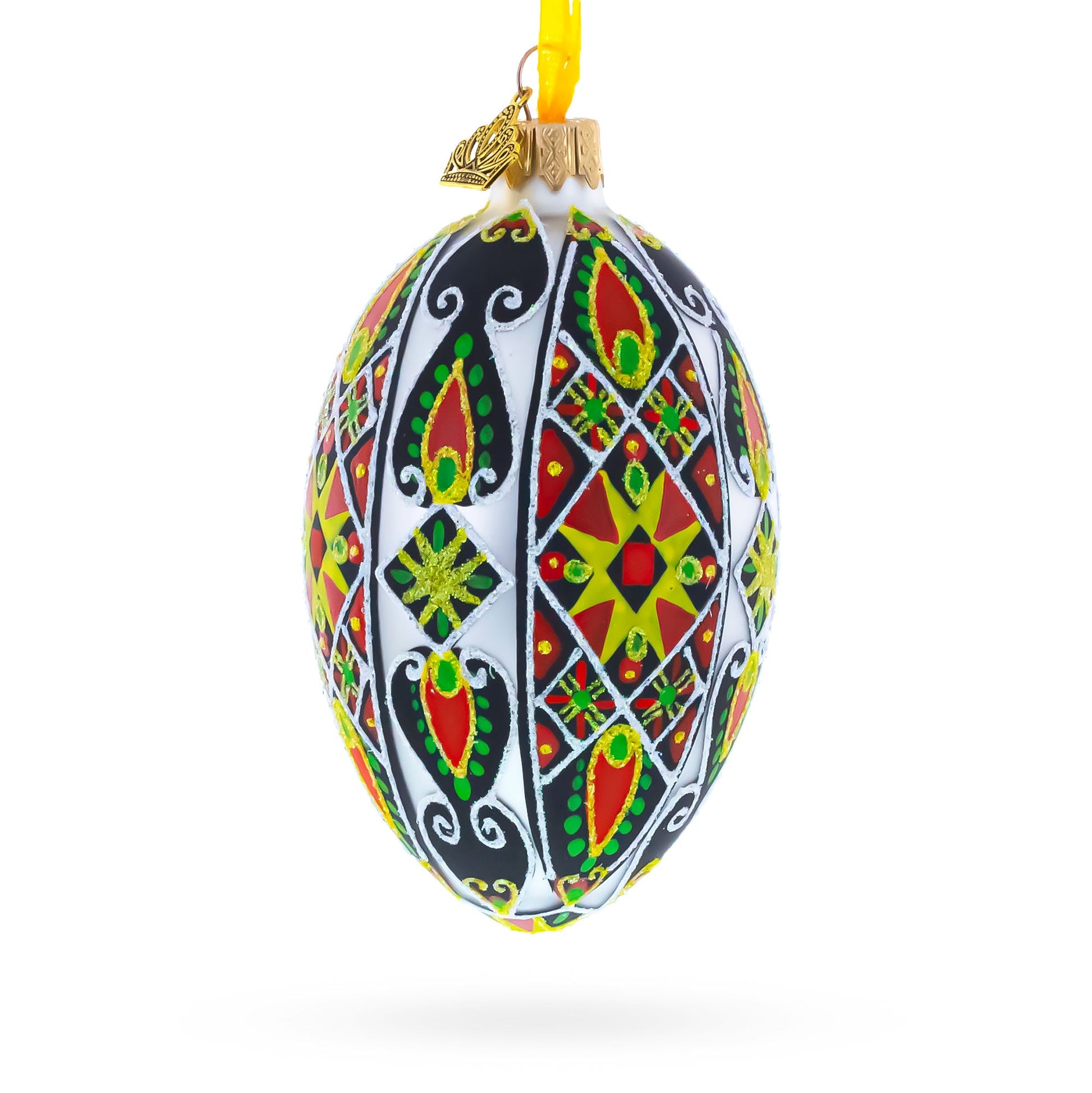 Traditional Ukrainian Pysanka Glass Egg Ornament 4 Inches