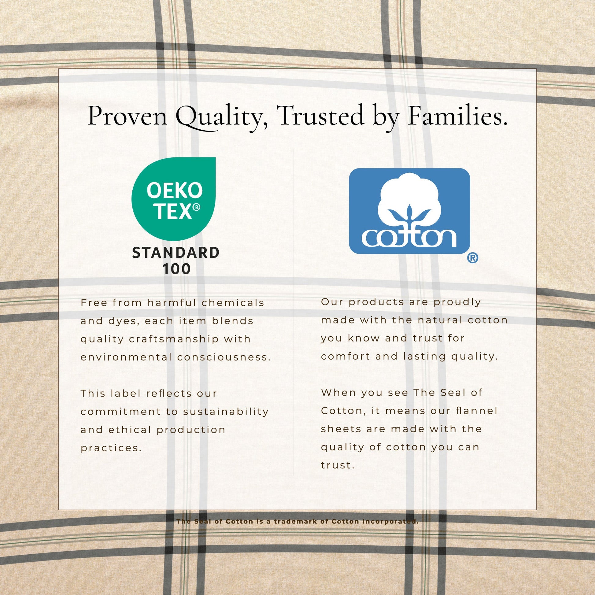 Fall to sleep in ultra-soft, breathable, and quality Turkish cotton flannel sheets. This collection features plaids and stripes that will add a subtle update to your bedroom for fall and winter. These 100% cotton sheets are double-brushed for softness and durability to ensure you have a set that offers comfort every night. Flannel sheets offer warmth for even the coldest of nights, so add these luxurious cotton flannel sheets to your bed and experience true comfort. Products that look good, feel good, and are made well, so you can trust you're getting high-quality products. These cotton flannel sheets are Standard 100 Certified by OEKO-TEX®.