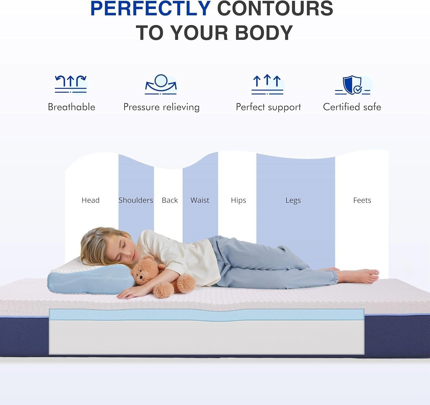 GET INSTANT RELIEF & SLEEP IN COMFORT with this Twin Size 6-Inch Gel Infused Medium Firm Memory Foam Mattress. This memory foam mattress is engineered with adaptive pressure relief foam that conforms to your body's natural curves. It reduces motion transfer and minimizes stress on pressure points like hips and shoulders. Wake up refreshed and aligned with deep, restorative comfort. This memory foam mattress features a medium-firm feel that supports your back while offering just enough softness for added comfort. Whether you're a side, back, or stomach sleeper, the mattress promotes healthy spine alignment and minimizes discomfort, helping you sleep deeper and longer. Stay cool throughout the night thanks to our advanced gel-infused cooling memory foam layer. The breathable foam and optimized airflow design work together to dissipate heat, regulate body temperature, and prevent night sweats. This cooling mattress ensures you sleep fresh and dry, even on the warmest nights. Rest easy knowing your mattress is made with Certi PUR-US certified materials—free from harmful chemicals, This memory foam mattress built to be durable and safe for the whole family, including children and those with sensitive skin.