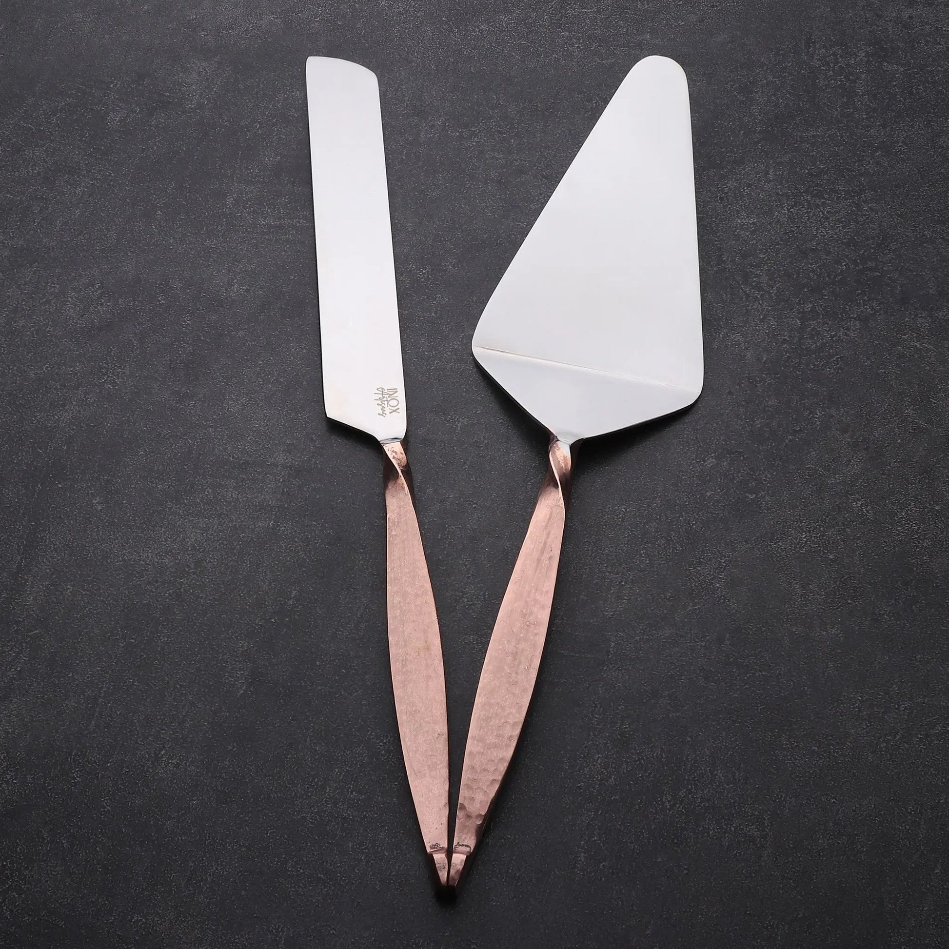 The artistic handles of our Twisted Urban Cake Serving 2 Pc. Set bring a distinctive aesthetic to your table setting. A flowing design that resembles a twisted ribbon with hammered details gives this cake serving set its one-of-a-kind appeal.