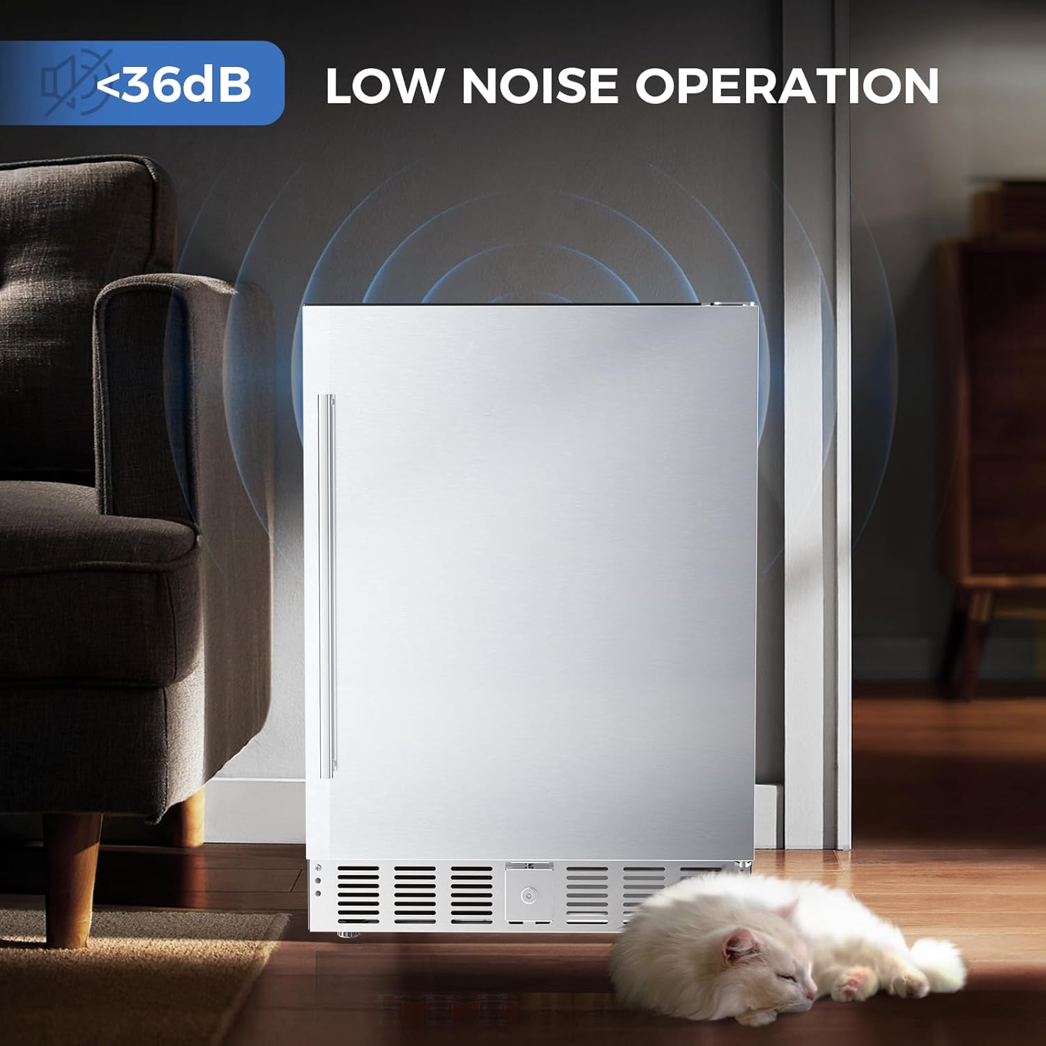 - Built-in design: The refrigerator under the counter has a unique front ventilation design that allows air circulation. Beverage refrigerator with stainless steel door built-in function will save a lot of space for your kitchen, especially suitable for installation in the kitchen, cabinet, living room, garage and other places