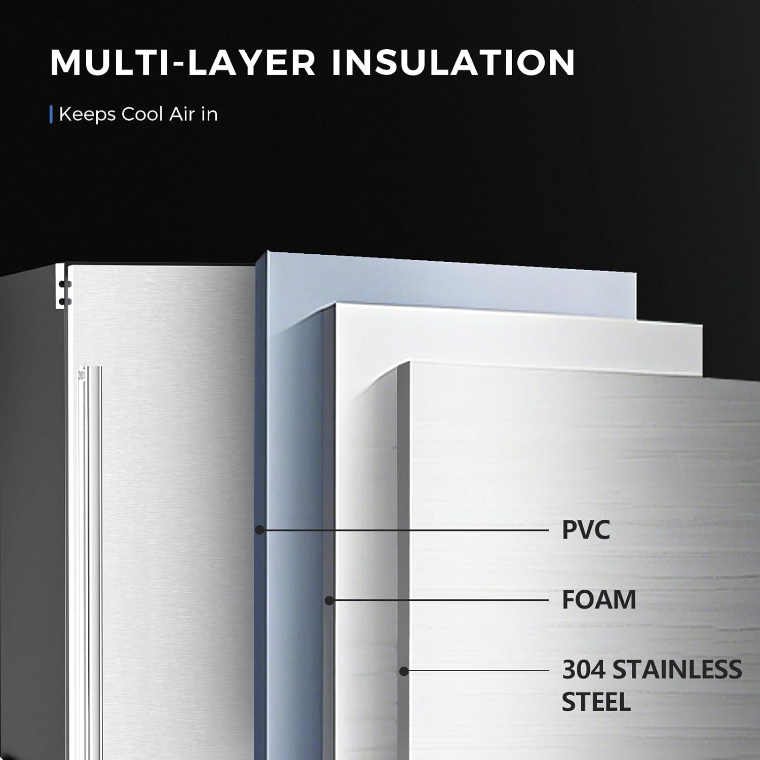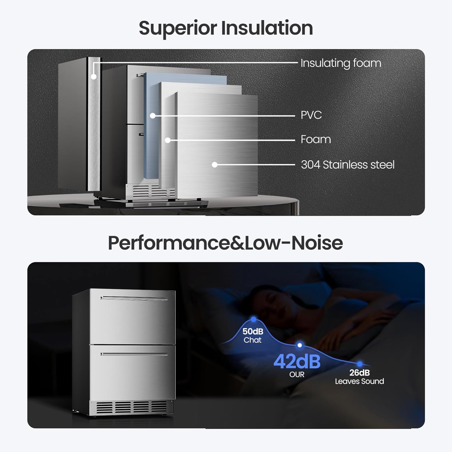 - 【Durable & Stable】Our fridge drawer is made of outdoor-grade 304 stainless steel, which, together with the highly airtight and wear-resistant door seals inside the case, provide stable cooling even in extreme weather. In addition, the beverage fridge use a 360° three-dimensional air duct design to maintain even cooling of ingredients while delivering a frost-free experience. Its structure uses microcellular high-pressure one-piece foaming technology to effectively minimize temperature fluctuations