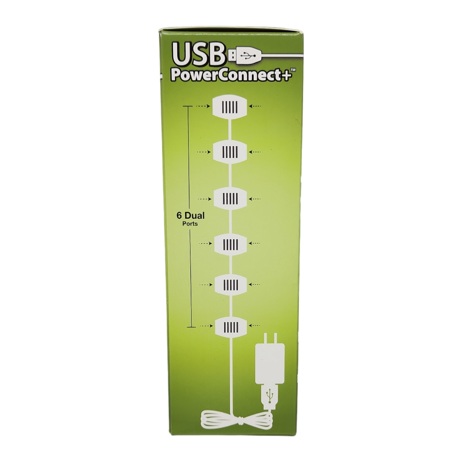 USB Power Extension Cord+ With White Wire and 12 Ports