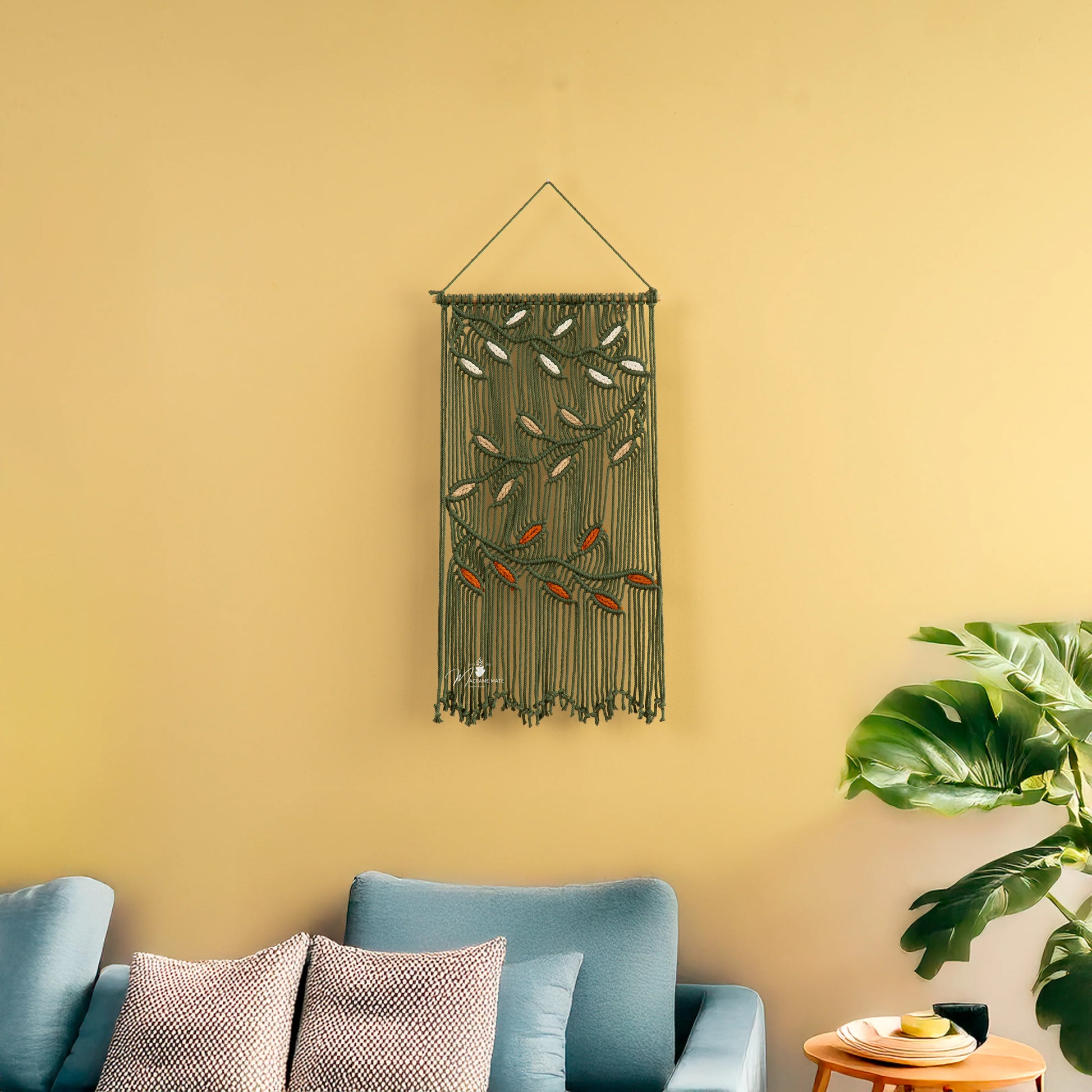 Bring nature's serenity indoors with our Vela Green Macrame Leaves – a collection of handcrafted, bohemian-inspired leaf hangings that add organic texture and earthy elegance to any space. Meticulously crafted from premium cotton cords in soothing green hues, these versatile pieces create beautiful wall art, plant accents, or shelf decor.