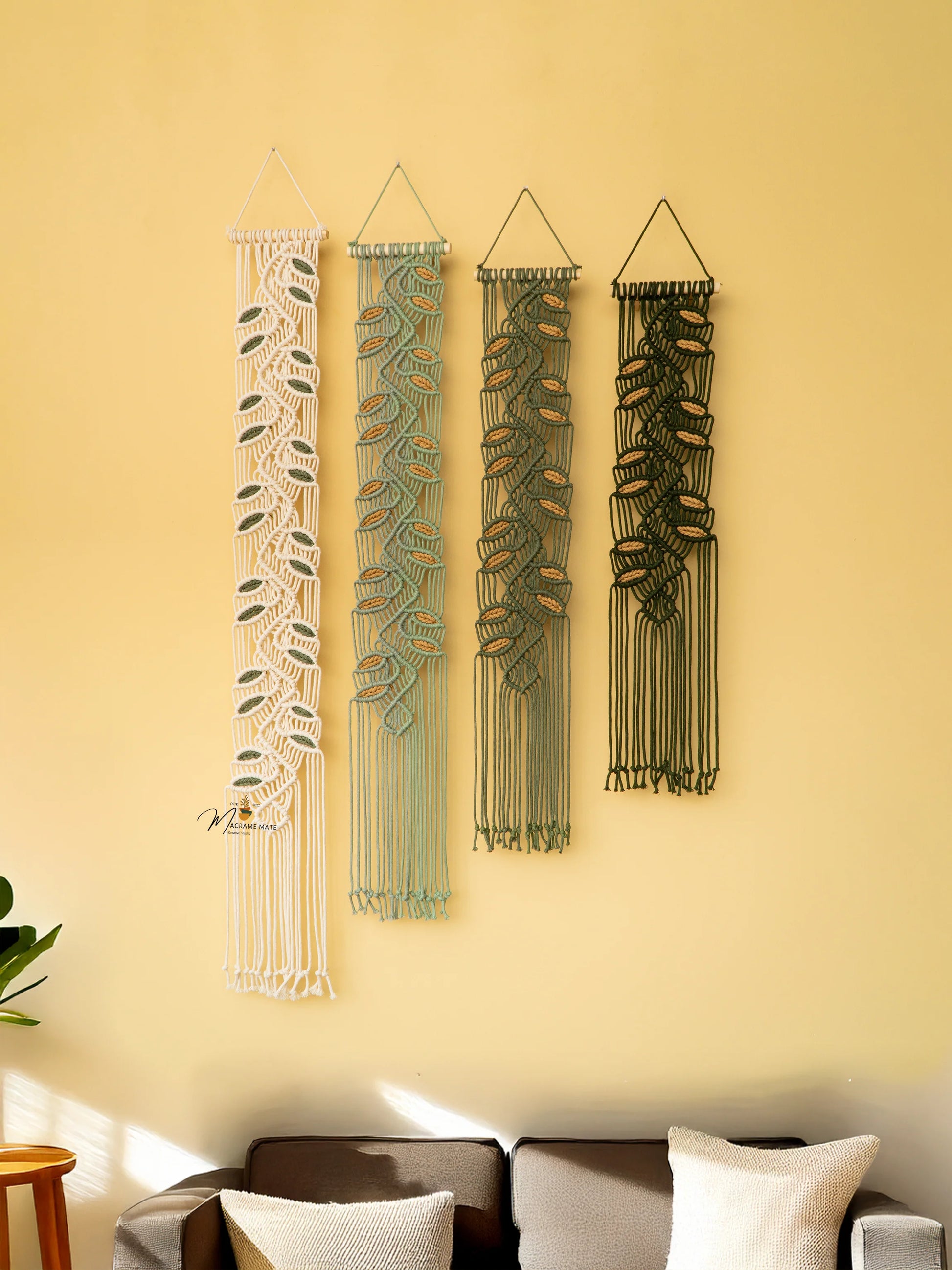 Transform blank walls into cozy boho escapes with our best-selling Vesta Green hanging! Hand-knotted in Houston, this two-tone macramé blends greeny shades (like olive/sage) into organic leaf textures that cast sunset-like shadows. Perfect as large wall art above beds, sofas, or entryways – no heavy frames needed!