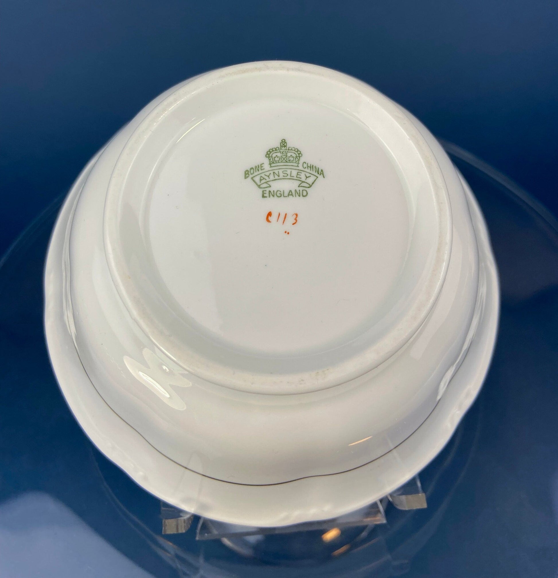 Vintage Aynsley Creamer and Sugar Bowl. Blue and Gold, with Hand Painted Bouquet of Flowers. Fine Bone China. Made in England. Excellent Condition. Marked by Manufacturer.