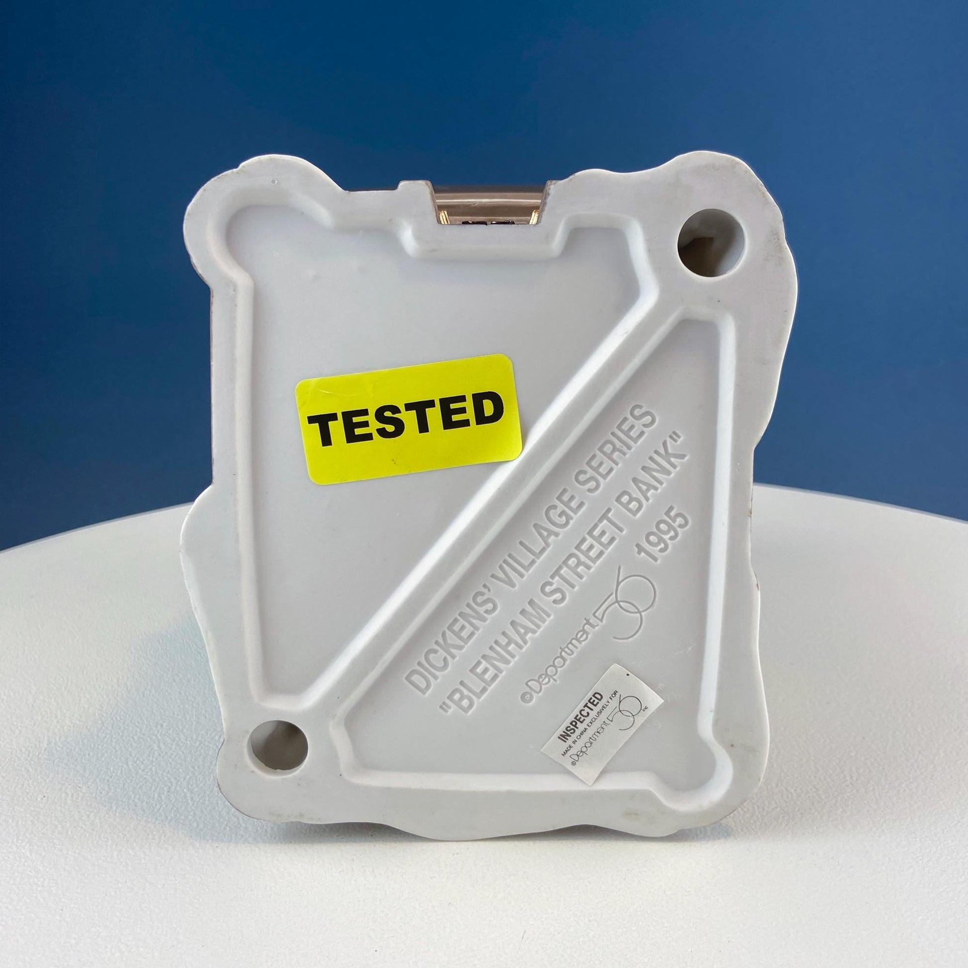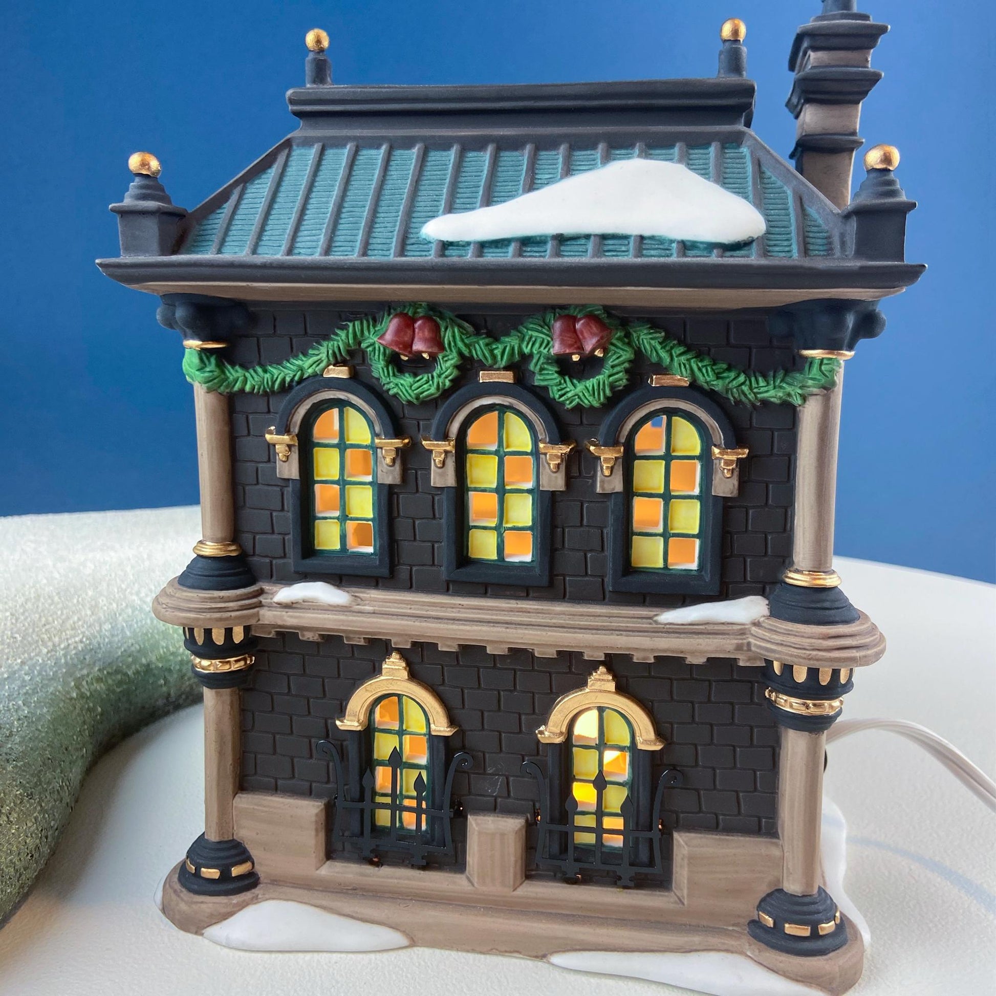 Vintage Blenham Street Bank & 2 Policeman Figurines by Department 56. Illuminated Christmas Village House. Dickens Village Series. Holiday Display. Hand-painted Porcelain. Gift for Dad, Friend in Finance, Him or Her. Light Kit Included. No Box. Additional Free-standing Islands, Trees, and Accessories are not Included in the price. Excellent Condition.