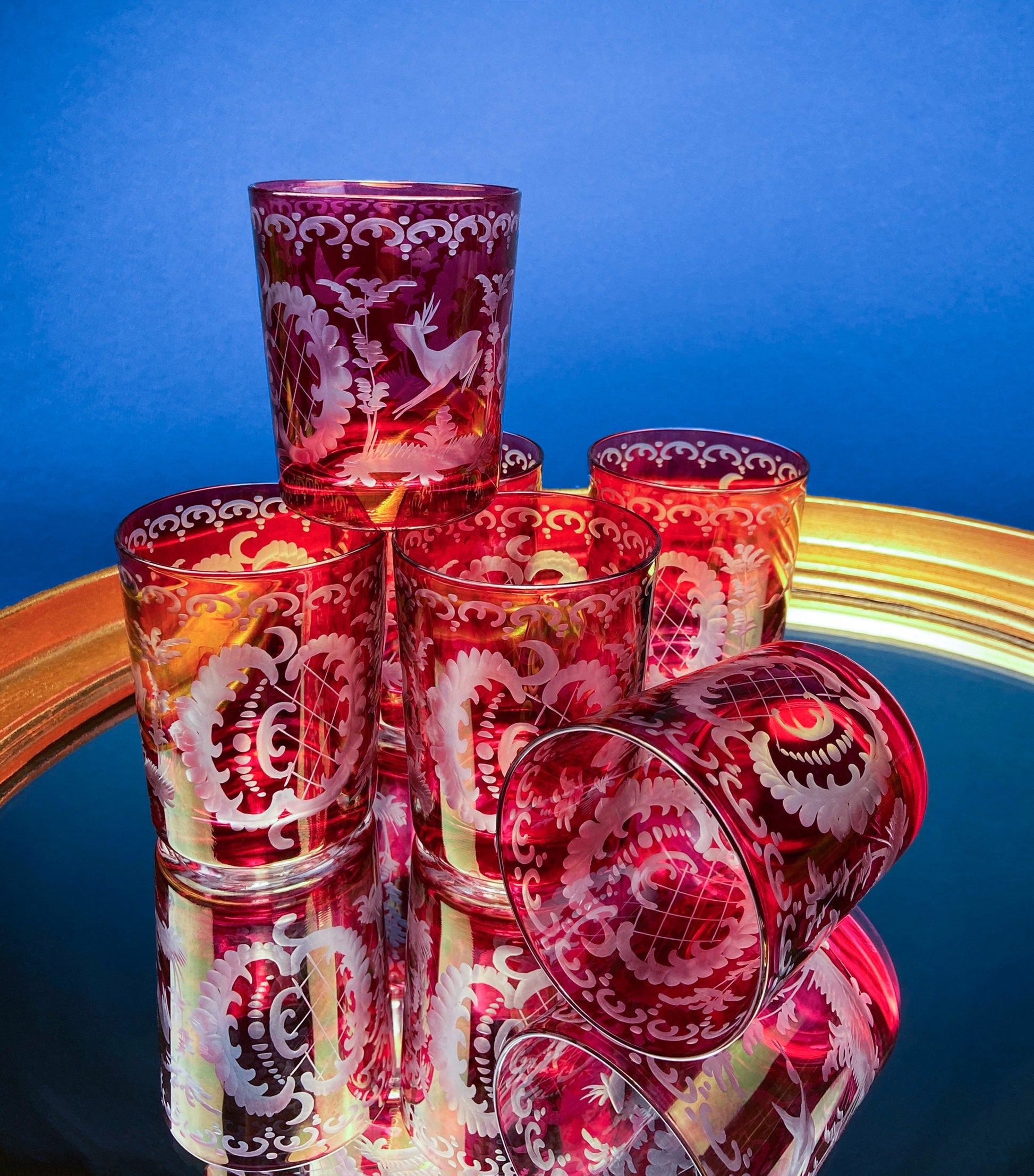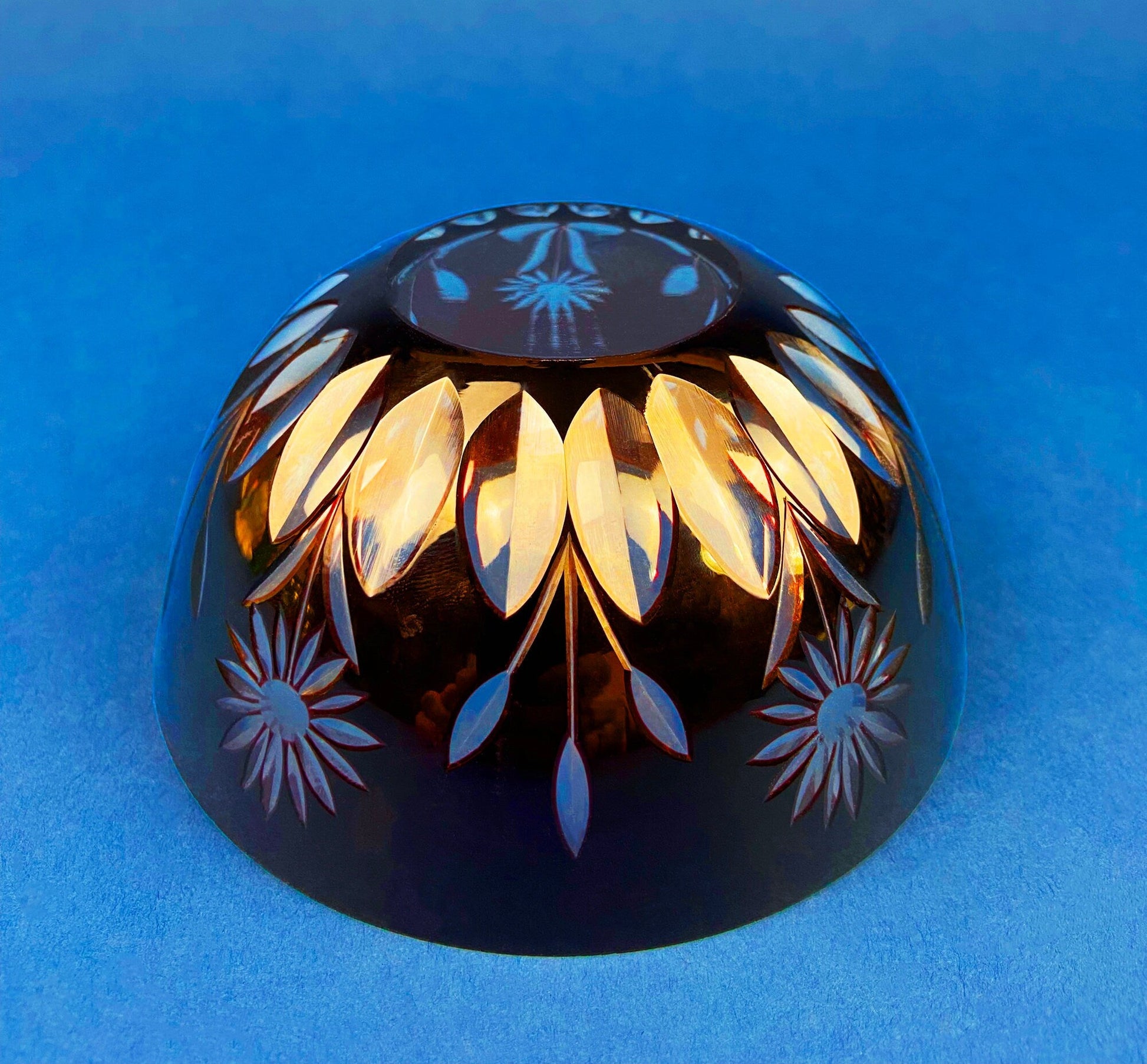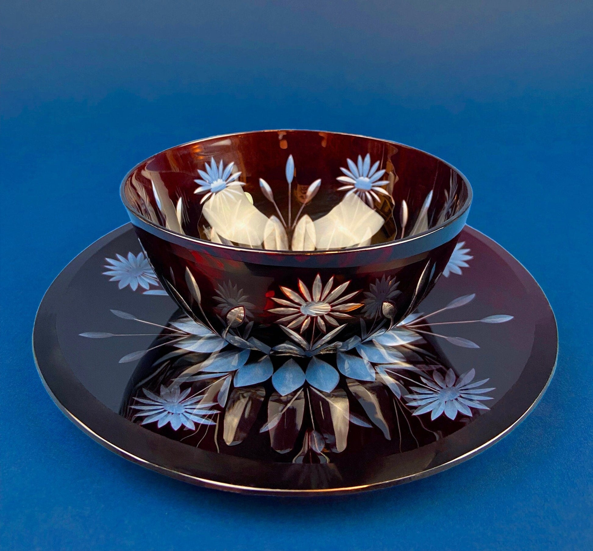 Vintage Bohemian Glass Crystal Serving Bowl and Plate. Set of Two Hand Cut Ruby Crystal Serving Dishes. Collectible Czech Glass.