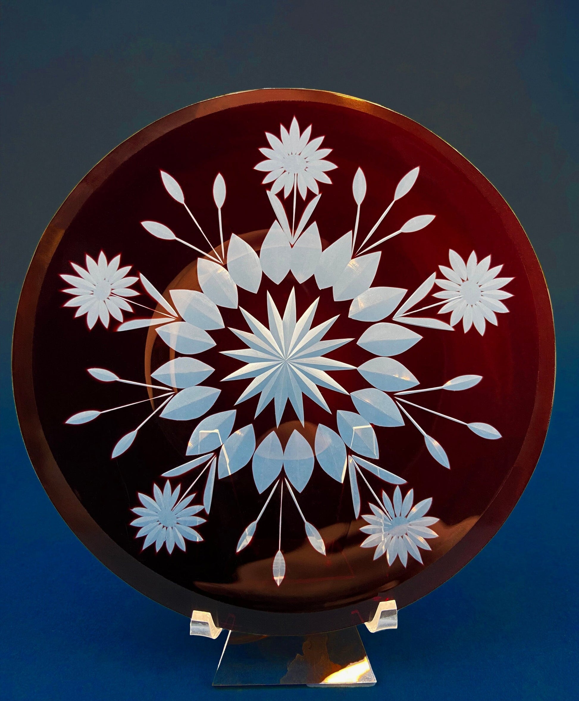 Vintage Bohemian Crystal Serving Bowl and Plate. Set of Two. Hand Cut, Ruby to Clear, Crystal Serving Dishes. Collectible Czech Glass. Excellent Condition.