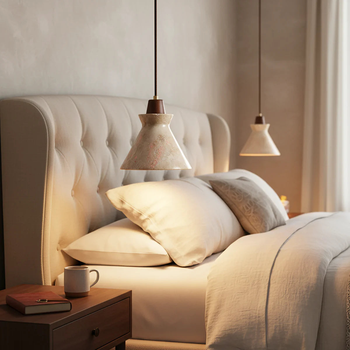 The stunning Vintage Conical Travertine Pendant Lamp combines natural elements and expert craftsmanship to create a bold and captivating piece that elevates any room with its inviting glow. Crafted with high-quality travertine stone and adorned with delicate wood accents, this lamp exudes subtle elegance and is an ideal choice for modern or rustic environments. Its unique sculptural silhouette and textural charm make it an enduringly charming addition to entryways, lounges, or beside tables.