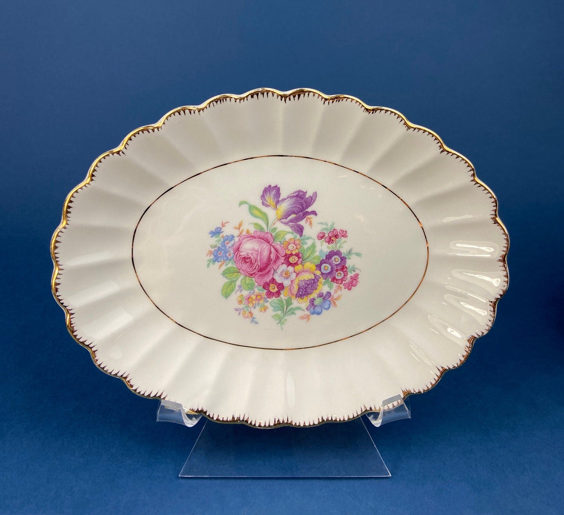 Vintage Dish Set. Leigh Wake by Leigh Potters. Set of 4 Placements: Dinner, Salad Plates, Soup, Fruit Bowls, One Serving Dish & Teacups. Hand Painted Flower Motif. Great Condition. No Chips, Cracks, or Crazing. Marked by Manufacturer.