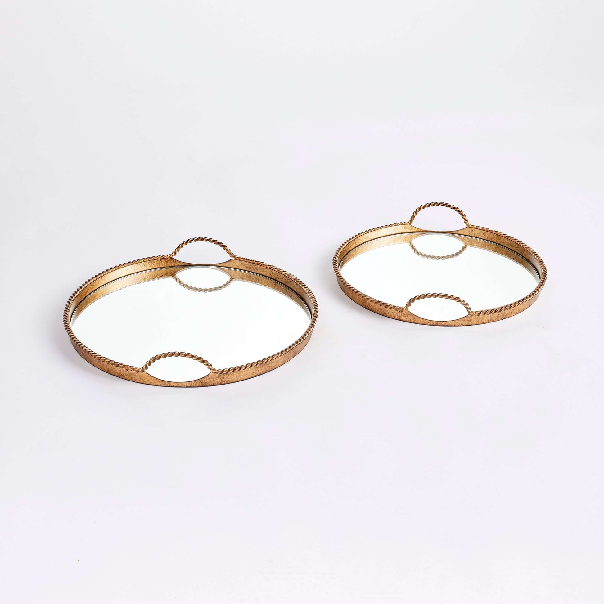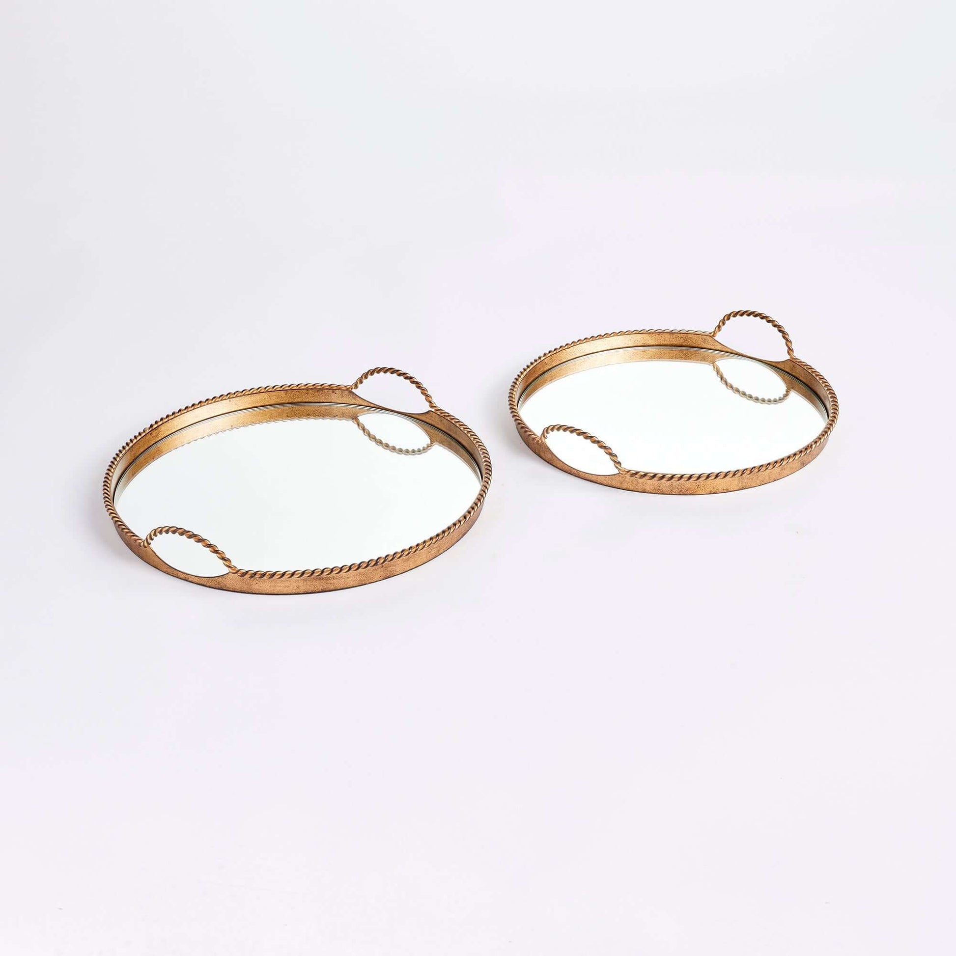 Vintage Gold Mirrored Tray Set with Braided Handles (Set of 2)