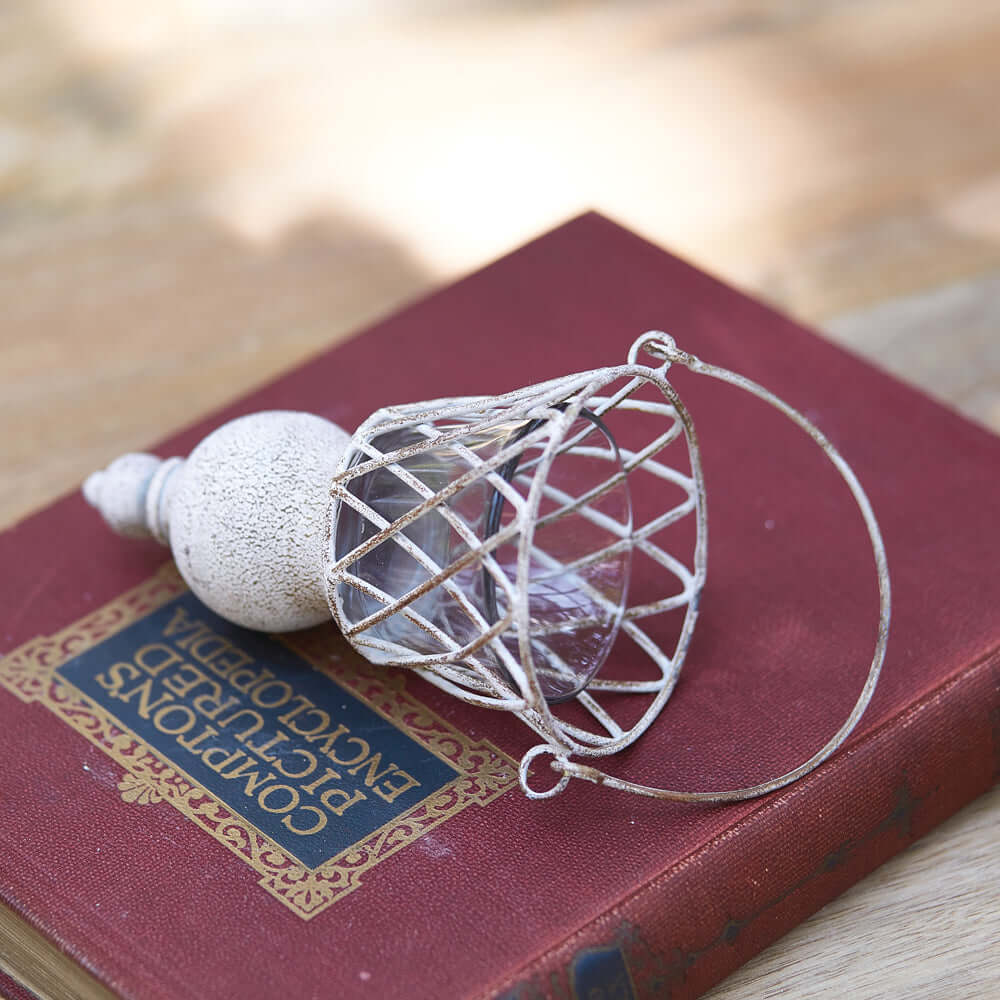 Bring a touch of old-world elegance to any space with our Vintage Hanging Votive Holders. Designed to add a soft, romantic glow, these are ideal for creating an inviting atmosphere whether indoors or outdoors. The distressed white finish and weathered look provide a perfect balance of rustic charm and timeless beauty, making the candle holders a versatile decor item suitable for various occasions.