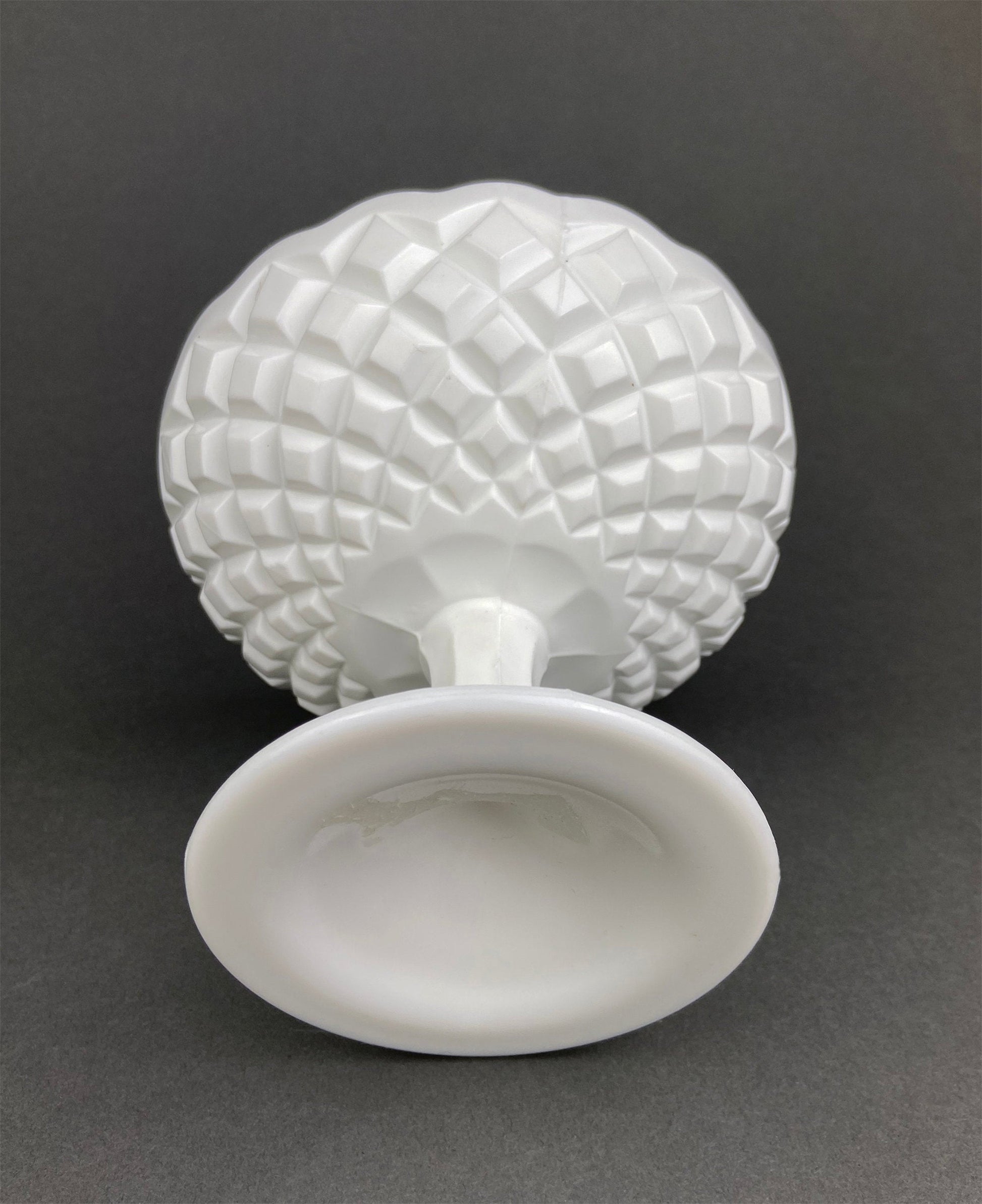 Vintage Milk Glass Footed Serving Dish or Goblet. Waffle Pattern with Scalloped Edge. Candy Dish. Trinket Dish. Collectibles. Replacements. It is in excellent condition. No cracks, chips or any other damages. Not marked by manufacturer. Great gift.