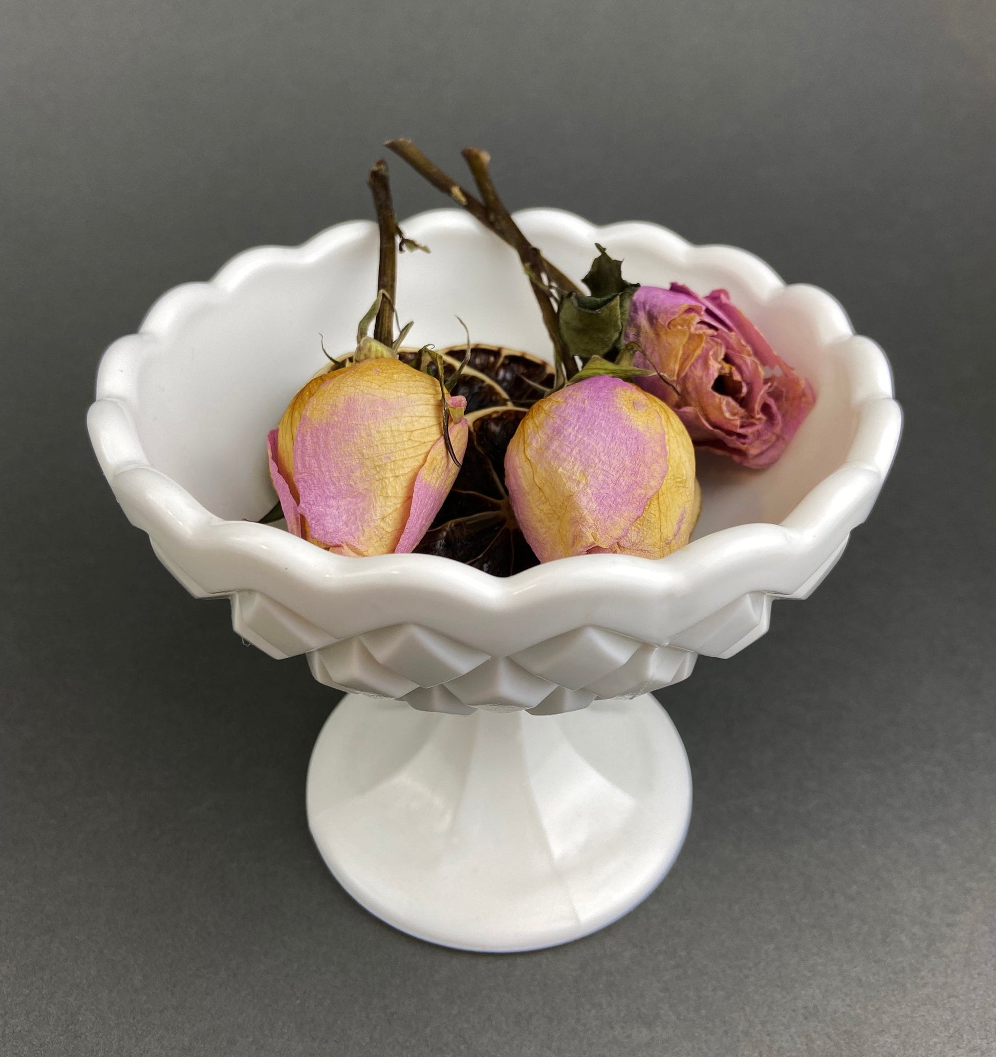 Vintage Milk Glass Footed Serving Dish or Goblet. Waffle Pattern with Scalloped Edge. Candy Dish. Trinket Dish. Collectibles. Replacements.