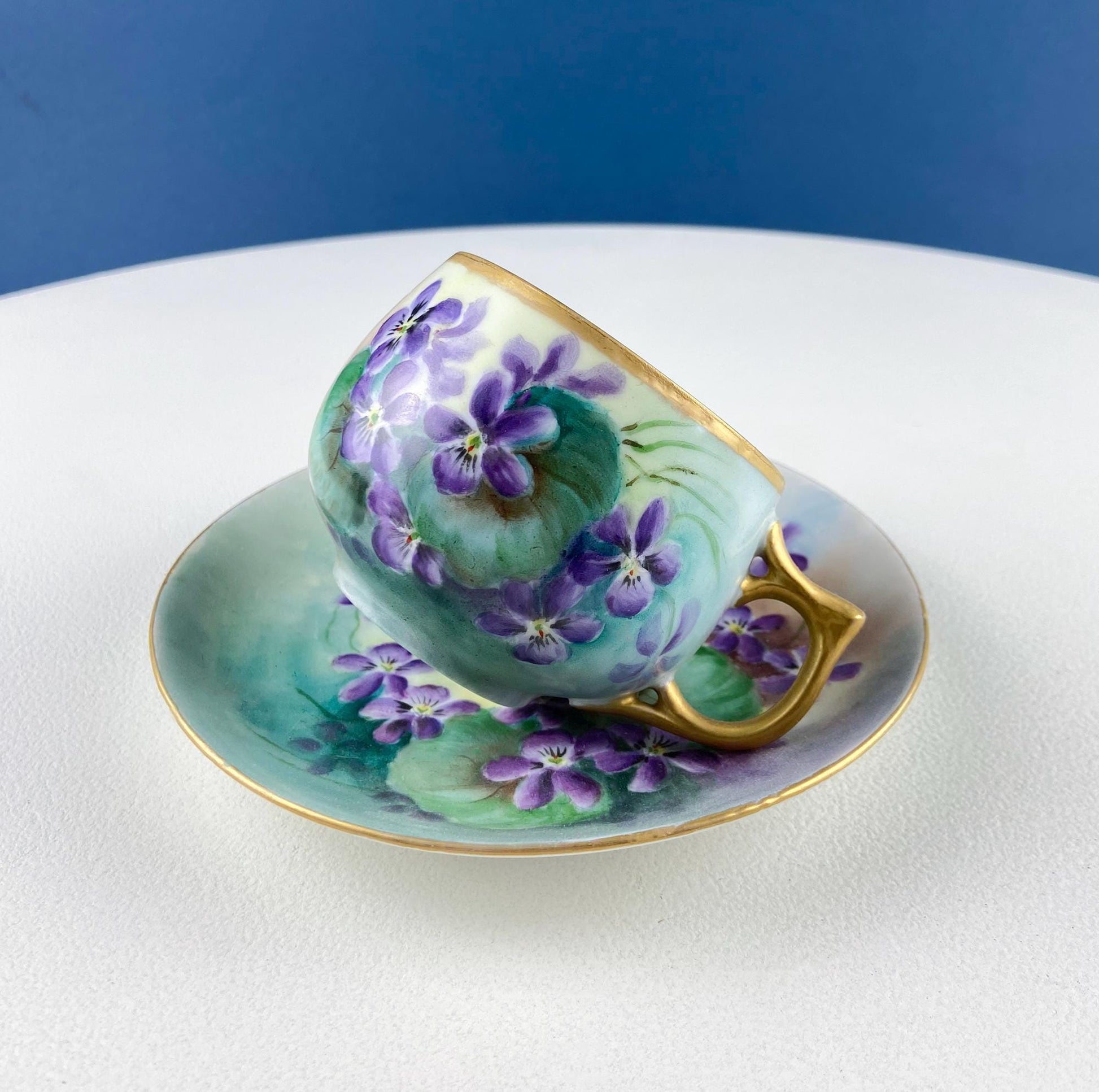 Vintage Porcelain Tea Cup & Saucer. Hand-Painted Violets. Modern Farmhouse. Tea Garden Party Hosting Essentials.