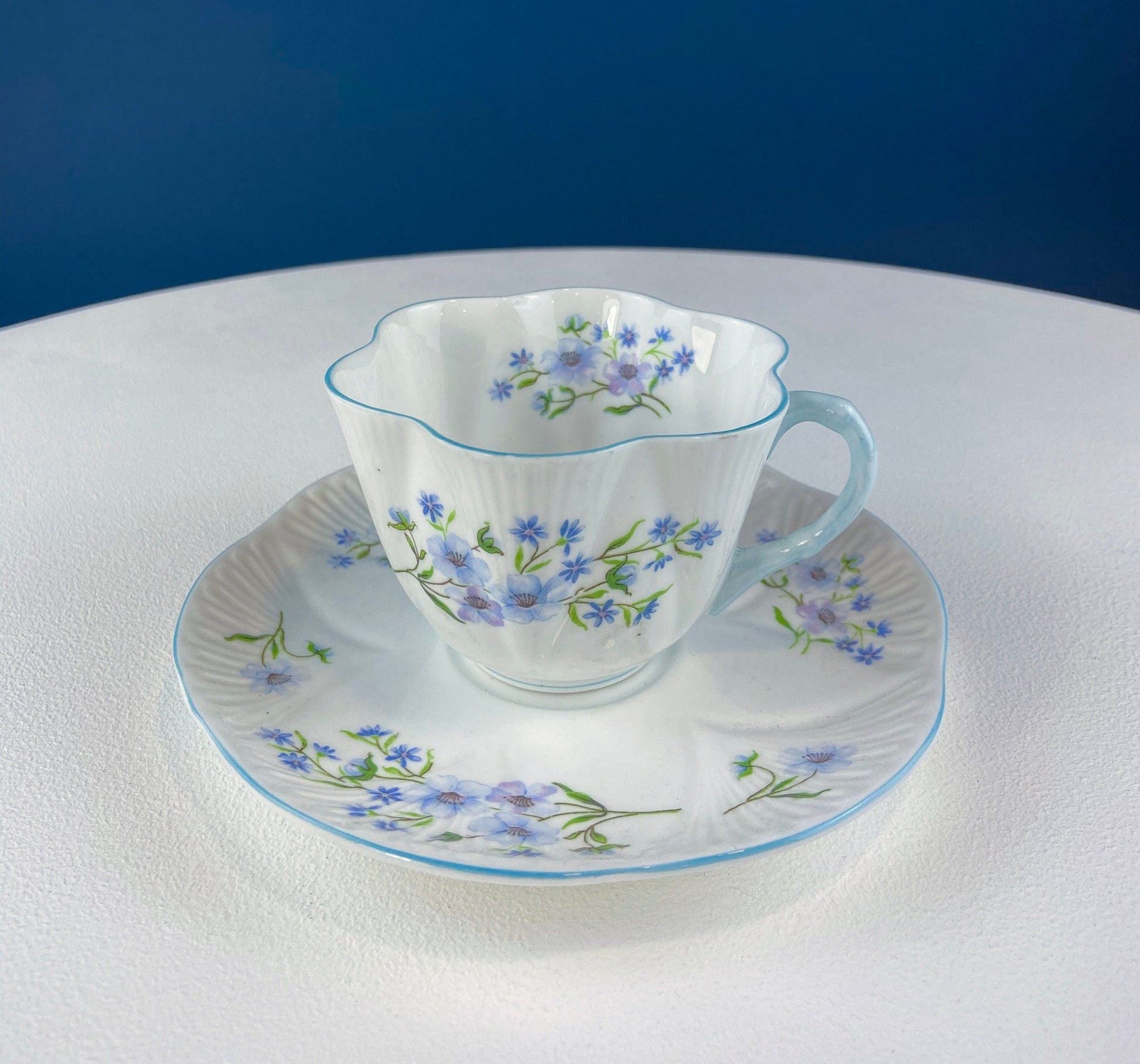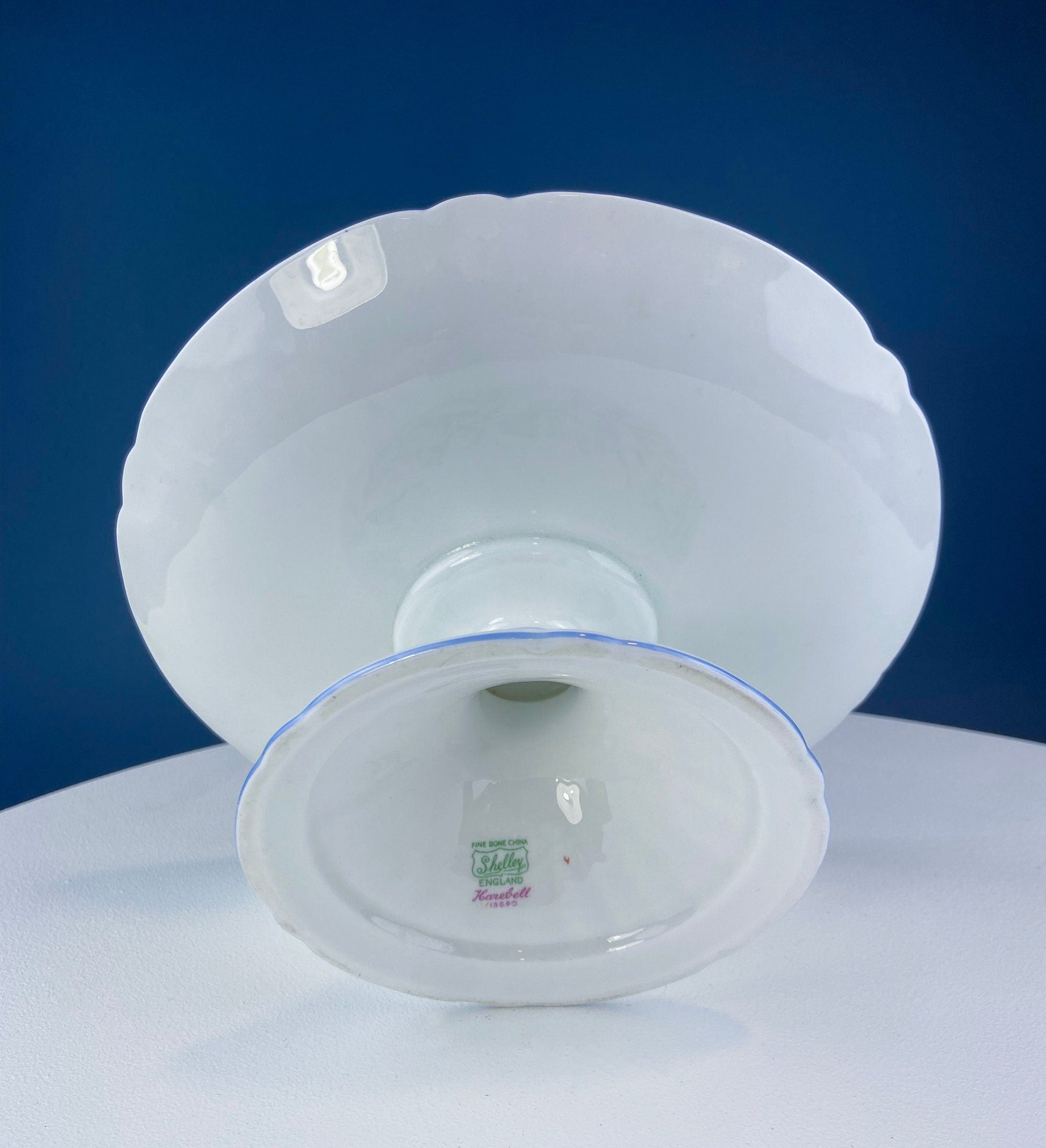 Vintage Shelley Footed Cake Stand. Hand Painted Porcelain Collectible Cake Serving Stand. Blue Bell Motif. Wedding Gift.