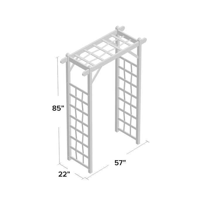 Bring bold angles into your garden using this Vinyl Arbor Tan Mocha 85 Inches Tall Made In USA. Placing an architectural structure in your yard adds height and shape to the natural beauty of the area. The square vertical rails lend eye catching height to this item, supporting a precise grid on each side. A matching grid tops the arbor, while the brown color of the unit furthers the natural effect. The square openings on the side and top of this arbor easily accommodate your climbing vines or flowers, which can be trained to grow in unique patterns throughout the squares. This arbor is constructed with the highest quality vinyl, containing the greatest concentration of titanium dioxide available. This compound acts as a powerful ultraviolet stabilizer, protecting the vinyl from the rays of the sun. The arbor will never fade, crack, peel, or rot, and its mocha color will remain beautiful and natural for years to come. Use the included ground anchors to place this item solidly in the soil. Add height and style to your yard with this Arbor. Assembly required. Made in the USA.