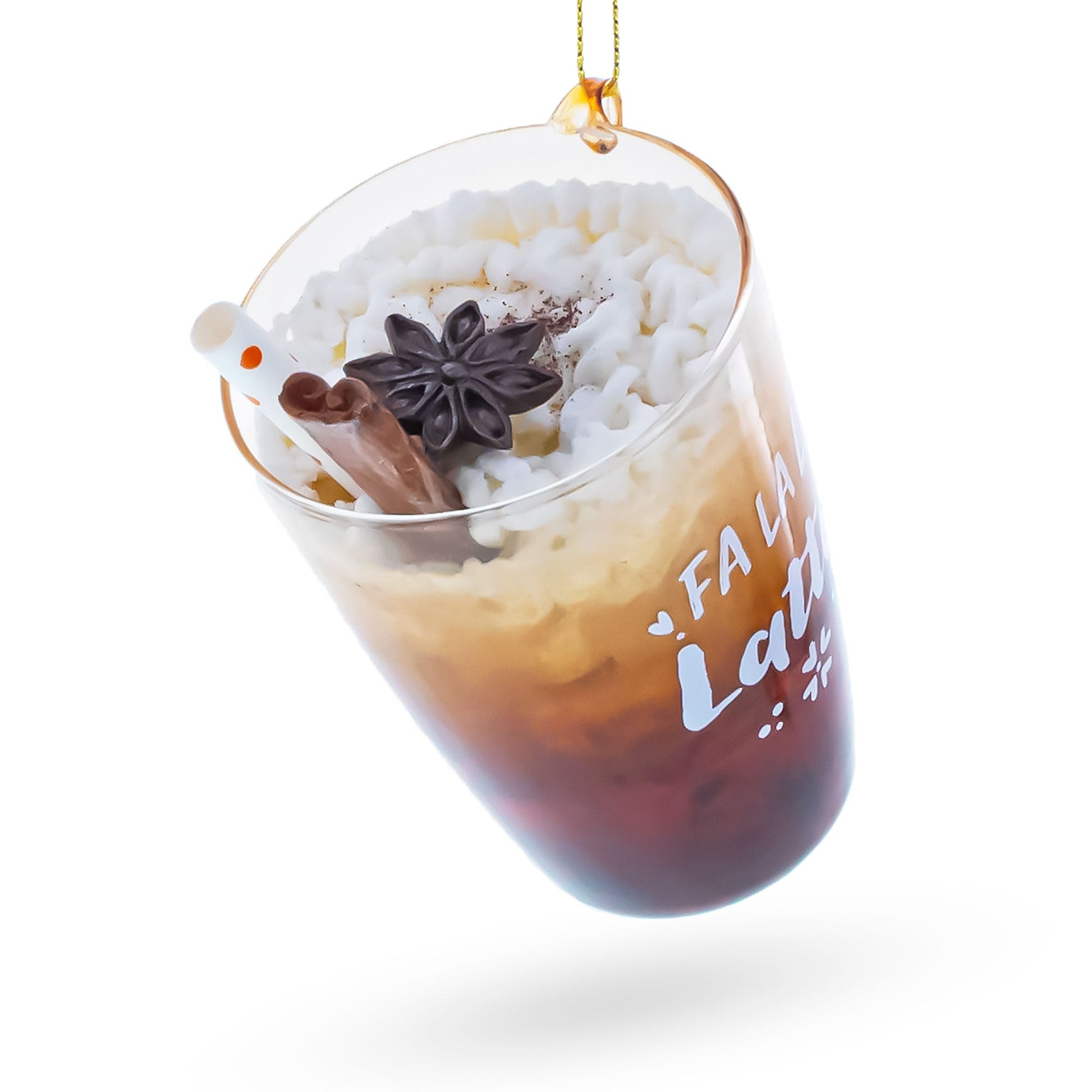Whipped Latte Holiday Drink with Cinnamon Stick Glass Christmas Ornament