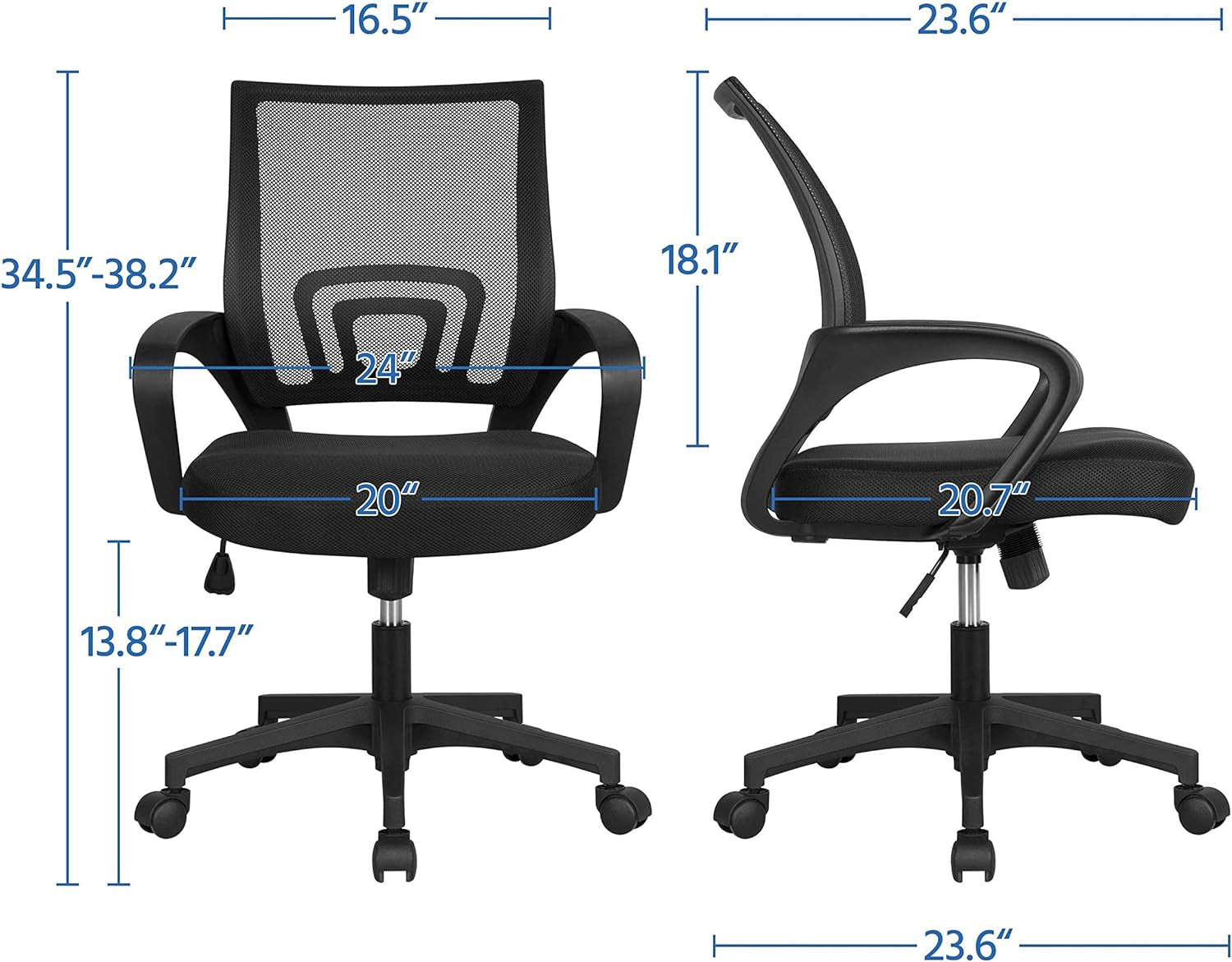 - Fully adjustable comfort: Chair height adjustable from 13.8 to 17.7 inches, plus a 360° swivel and smooth rolling casters.