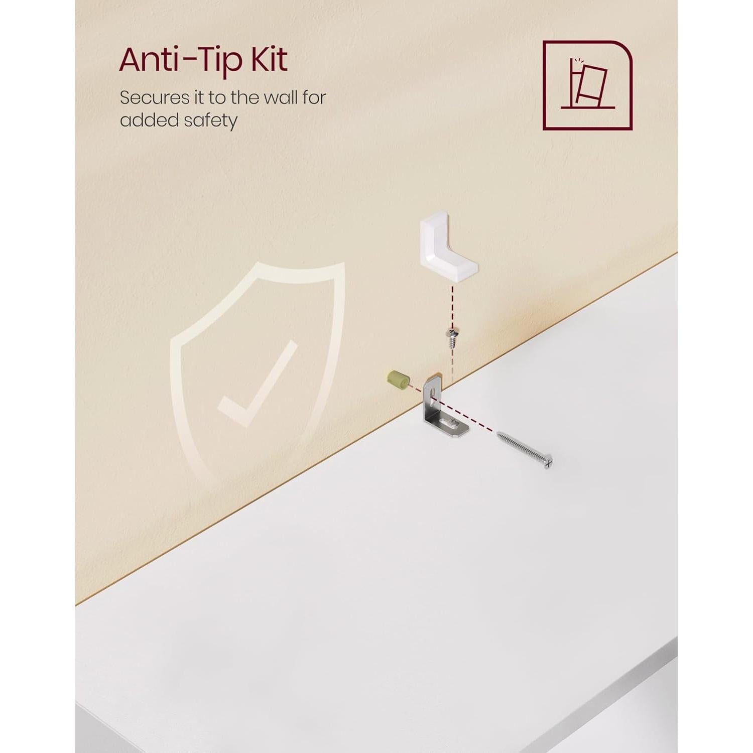 - Safe, stable setup — includes a metal L-shaped anti-tip kit and assembly instructions to secure the unit to the wall and prevent tipping.