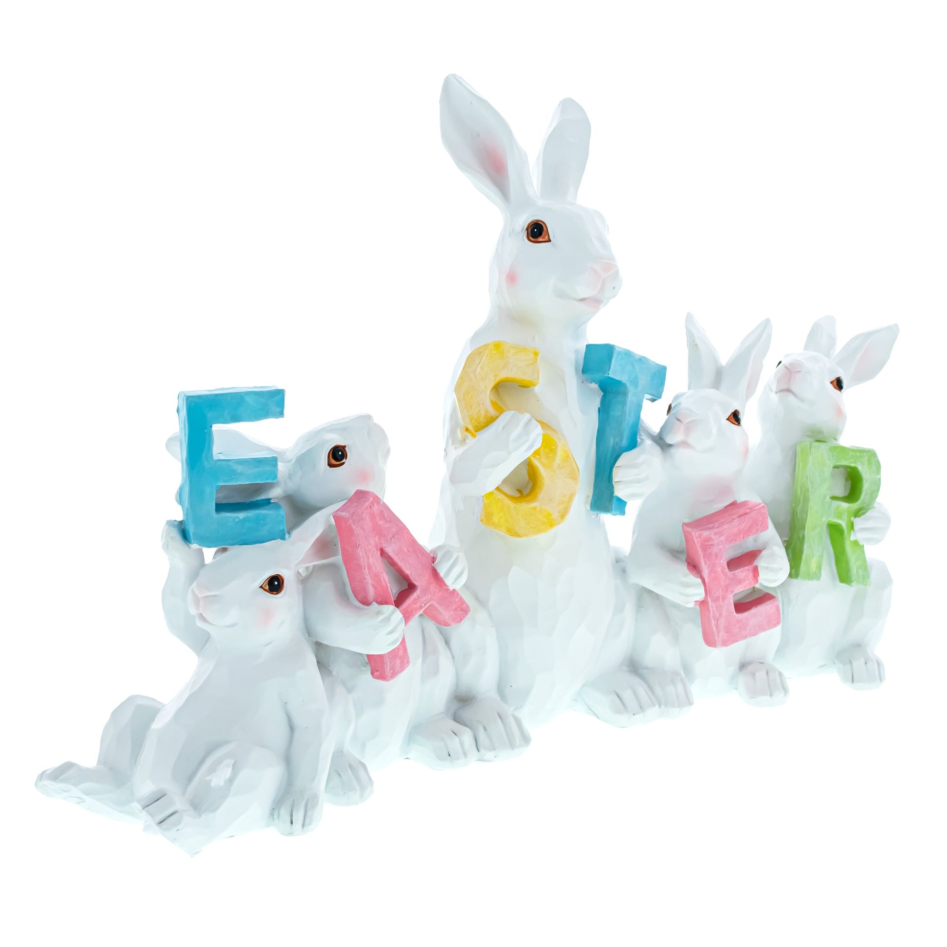 White Bunnies Holding EASTER Letters Figurine 12 Inches