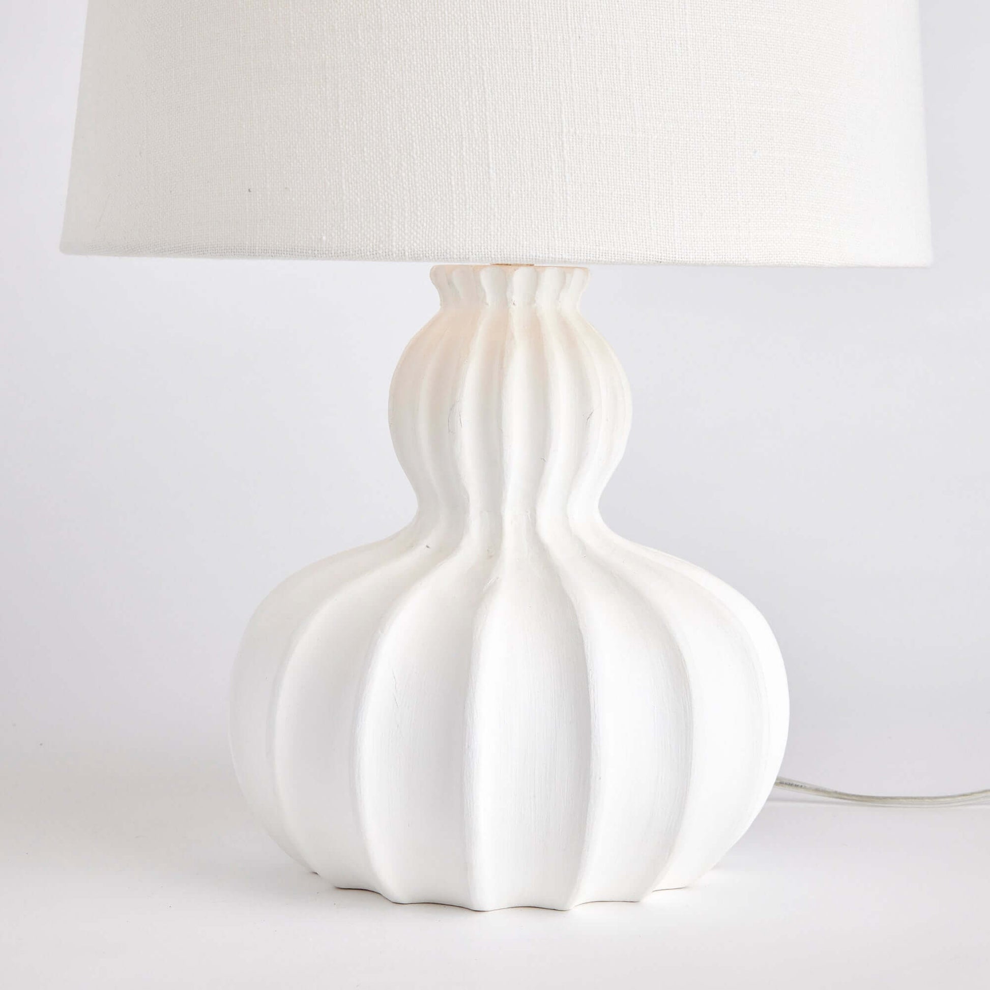 Bring soft sophistication and artisan detail into your home with this White Carved Wood Table Lamp with Curved Base. Beautifully sculpted from solid wood, the base features an elegant, fluted silhouette with flowing curves and subtle ridges—reminiscent of classic architectural forms and vintage pottery shapes. Its clean white finish gives it a timeless, serene presence that complements both modern and traditional spaces.
