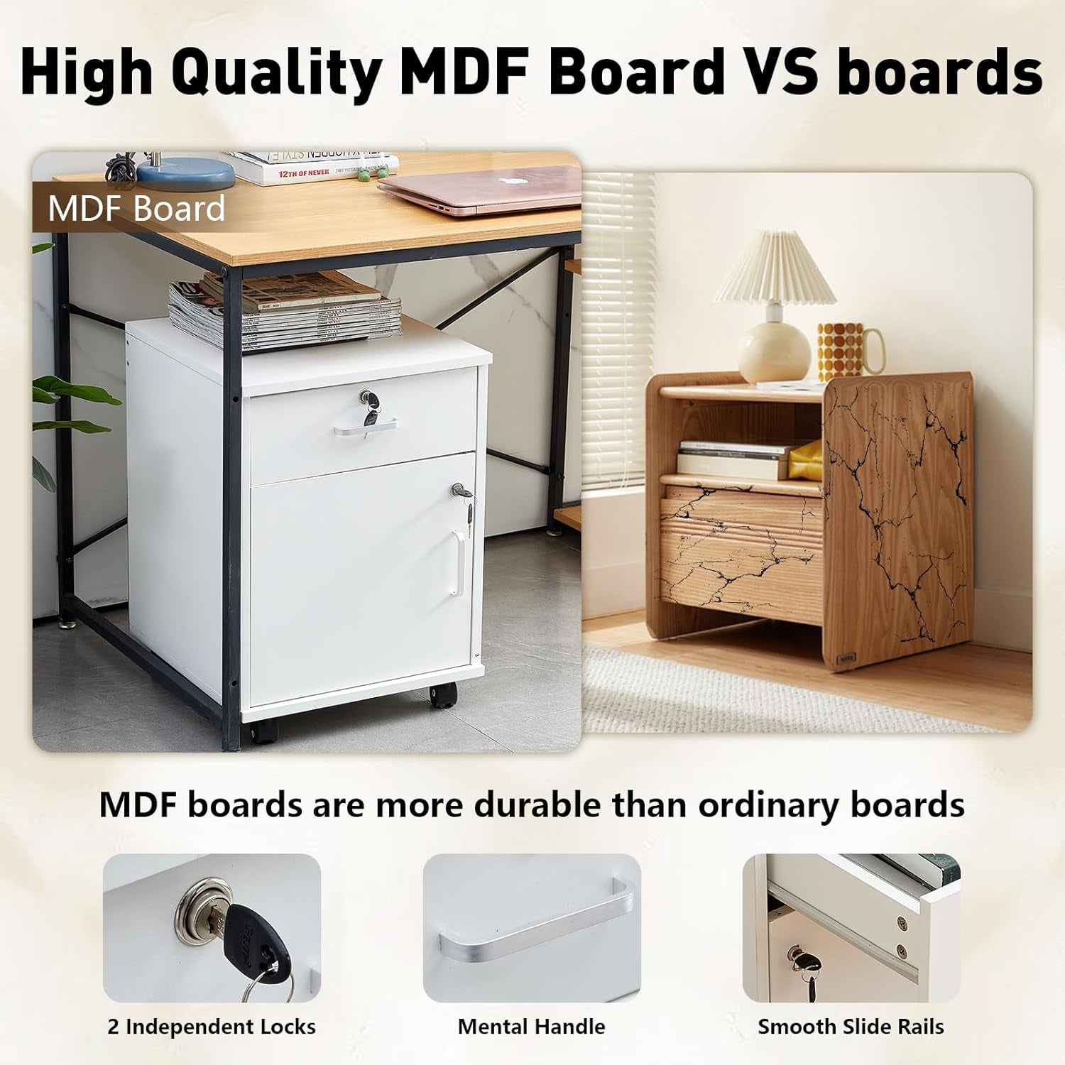 Transform your home office with a compact, secure rolling file cabinet. The white Mobile File Cabinet fits neatly under your desk, giving you organized space for letters, A4 documents, and everyday essentials—without crowding your workspace.