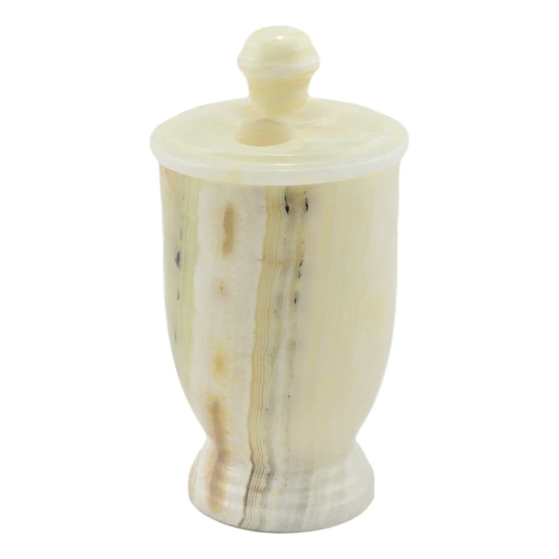 Handcrafted and polished this White Onyx Toothbrush Holder is part of the Bathroom Accessories of Atlantic Collection. Other items of this design collection are also available here individually as well as in sets.