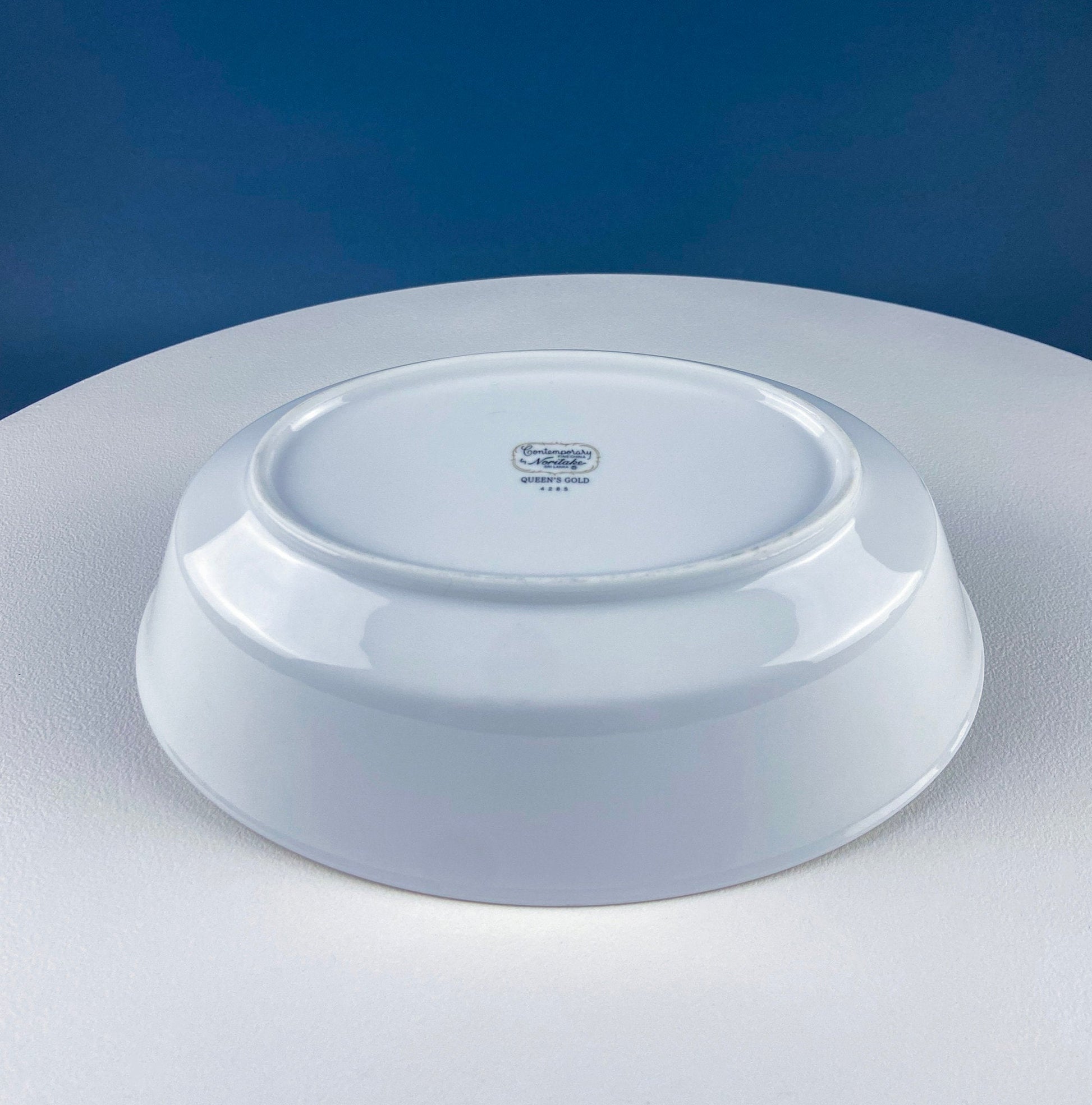 White Porcelain Oval Serving Bowl with Embossed Gold Band. Wedding Band China. Contemporary Noritake Queen's Gold. Dining Room Decor. Like New Condition. Excellent Wedding Gift. Fine Dining. Holiday Celebration. Marked by the Manufacturer.