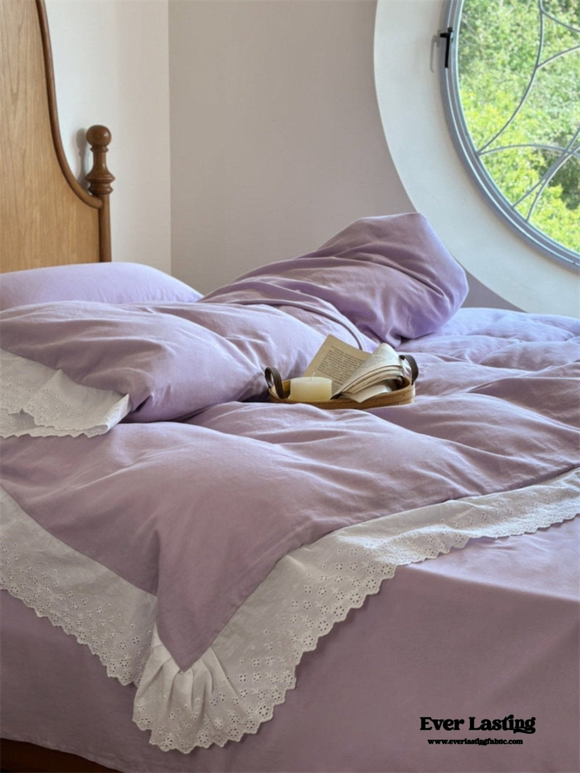 White Ruffle Lace Bedding Set / Purple