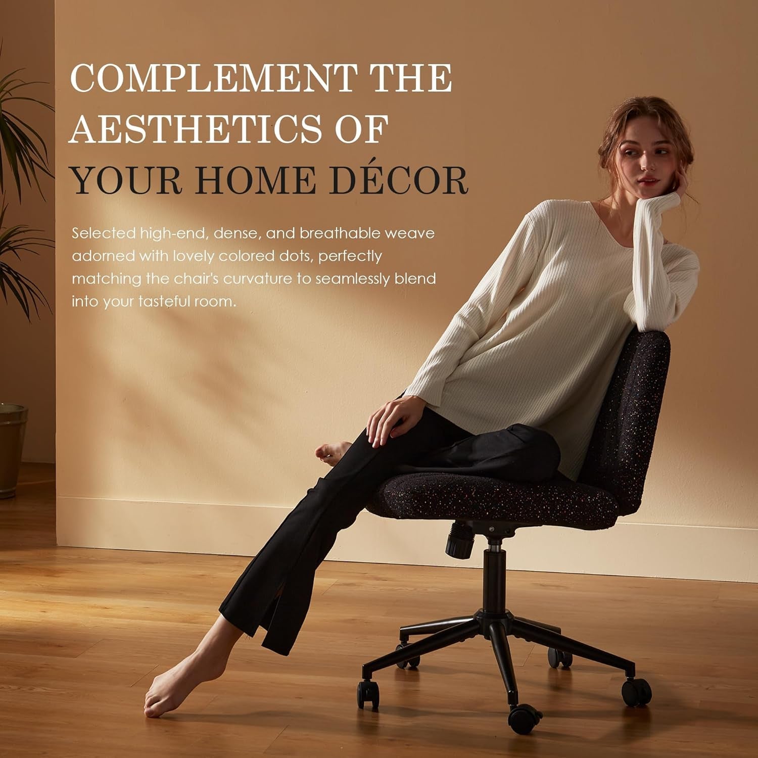 Built for versatility, this chair is a perfect fit for home offices, study desks, and vanity setups. It pairs a sleek black finish with a chic crisscross stitching pattern, delivering a modern aesthetic without sacrificing comfort or durability.