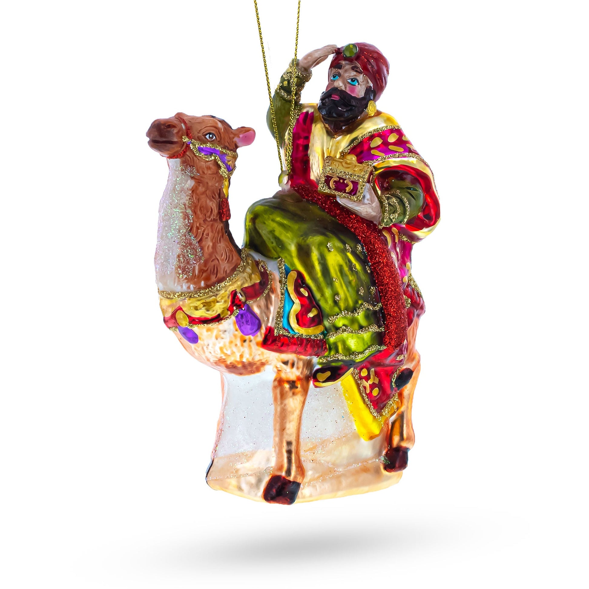 Wiseman Riding a Camel Glass Christmas Ornament