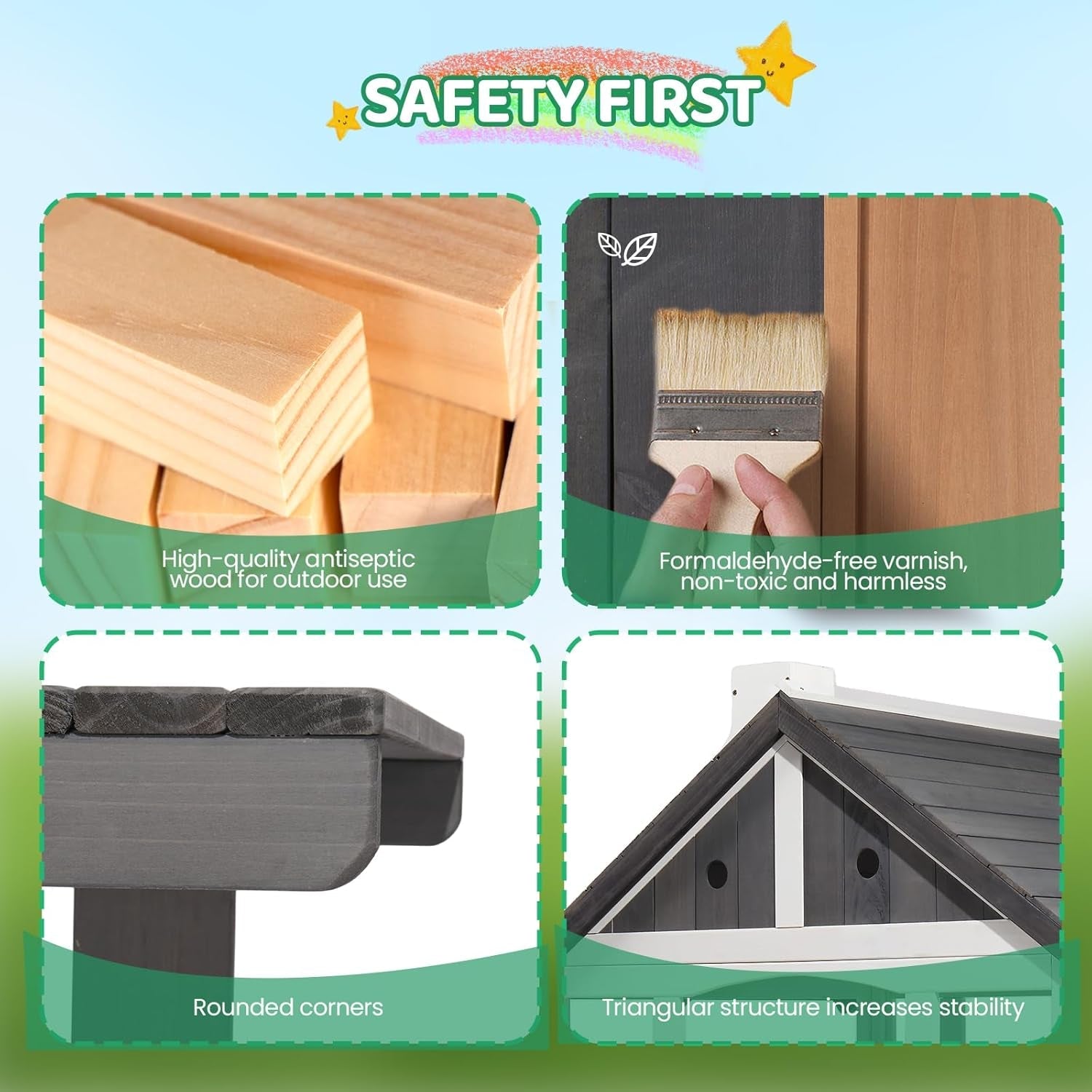 - Durable, weather-ready materials: sturdy wood built to withstand outdoor wind, rain, and sun, promising years of joyful play.