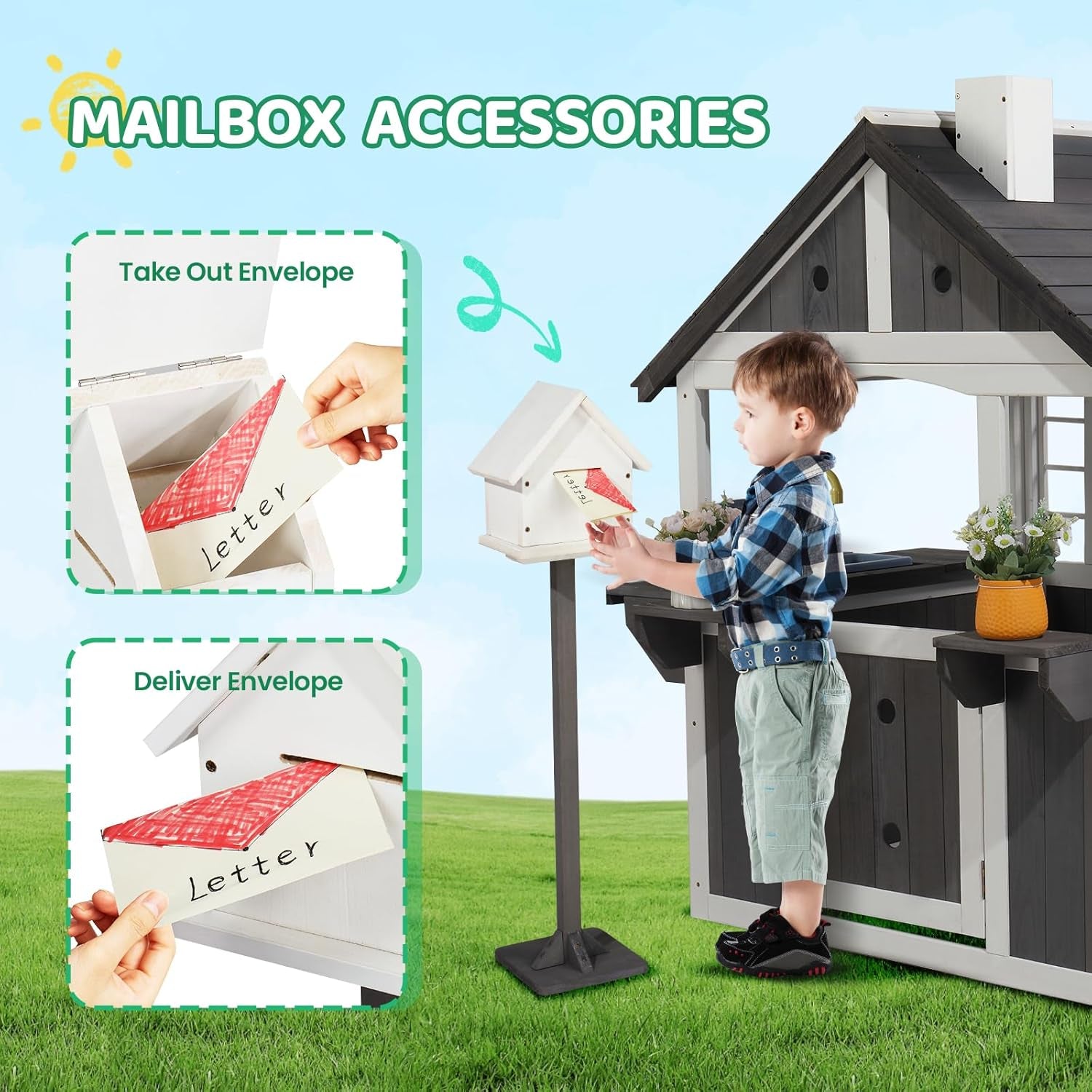 Imagine afternoons filled with laughter as kids whip up pretend meals, share snacks at the picnic table, and drop playful notes in the mailbox—creating lasting memories in a premium outdoor space that grows with them.